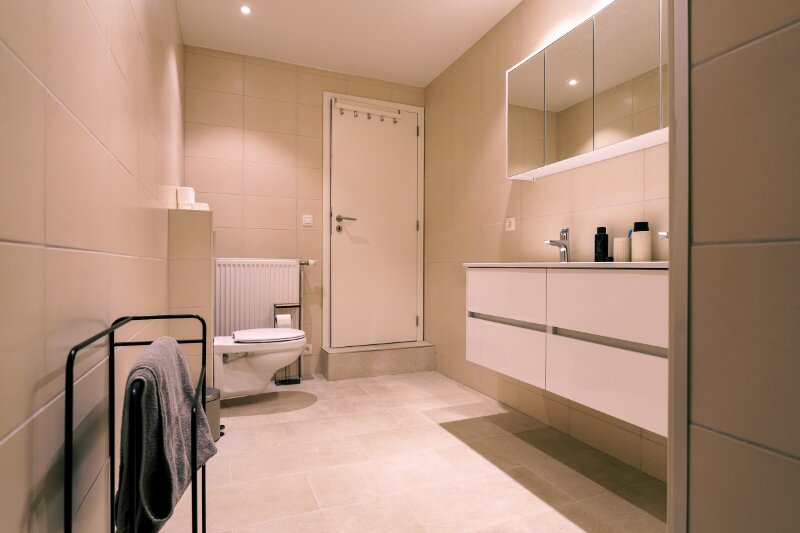 Het appartement is gelegen op de eerste verdieping van een kleinschalige residentie met slechts één winkel op het gelijkvloers — ideaal voor wie houdt van privacy.