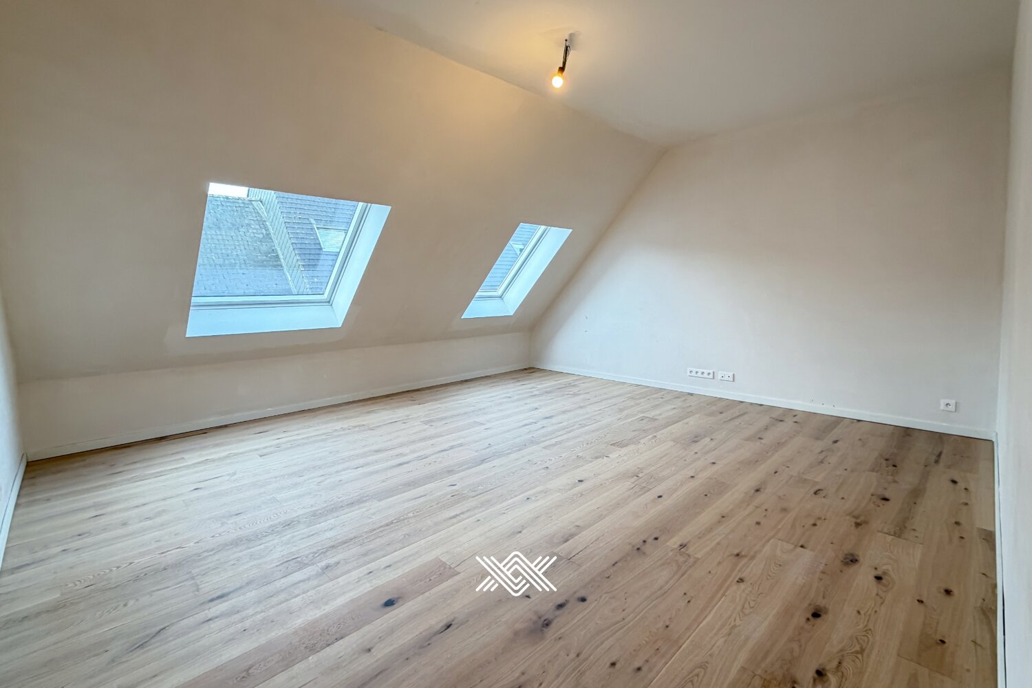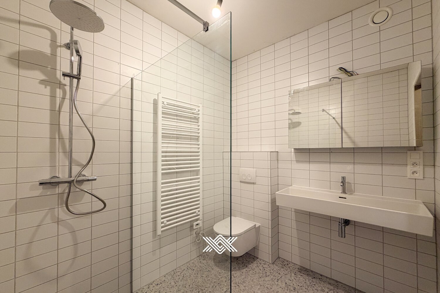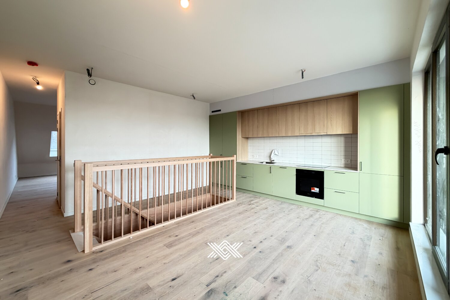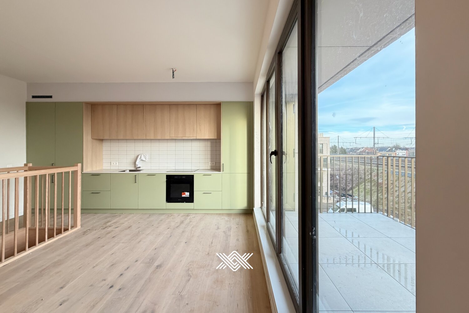 Dit gloednieuwe en bijzonder ruime duplexappartement van 141,90 m² combineert comfort, licht en hedendaagse technieken. Via de inkomhal met gastentoilet krijgt u toegang tot drie volwaardige slaapkamers, een afzonderlijk toilet en een stijlvolle badkamer uitgerust met een wastafel, toilet en een ruime inloopdouche. Op de bovenverdieping bevindt zich de lichtrijke leefruimte met een moderne, volledig uitgeruste keuken. Aansluitend is er een praktische bergruimte. Grote raampartijen zorgen voor een aangename lichtinval en geven uit op de twee terrassen op het tweede en derde verdiep met een gezamenlijke oppervlakte van 11,7 m² en een zuidelijke orientatie.