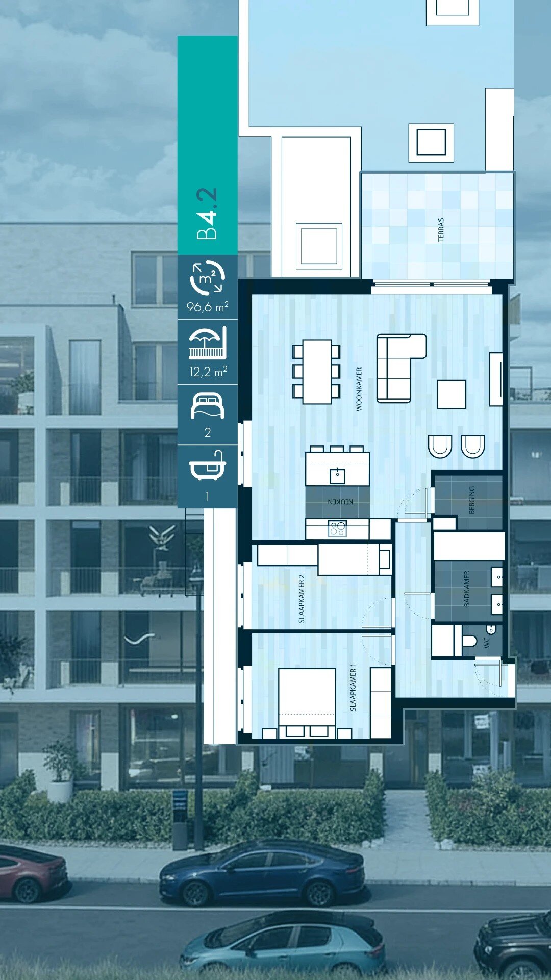 - Onderdeel van een modern project met 85 appartementen en 2 commerciële units