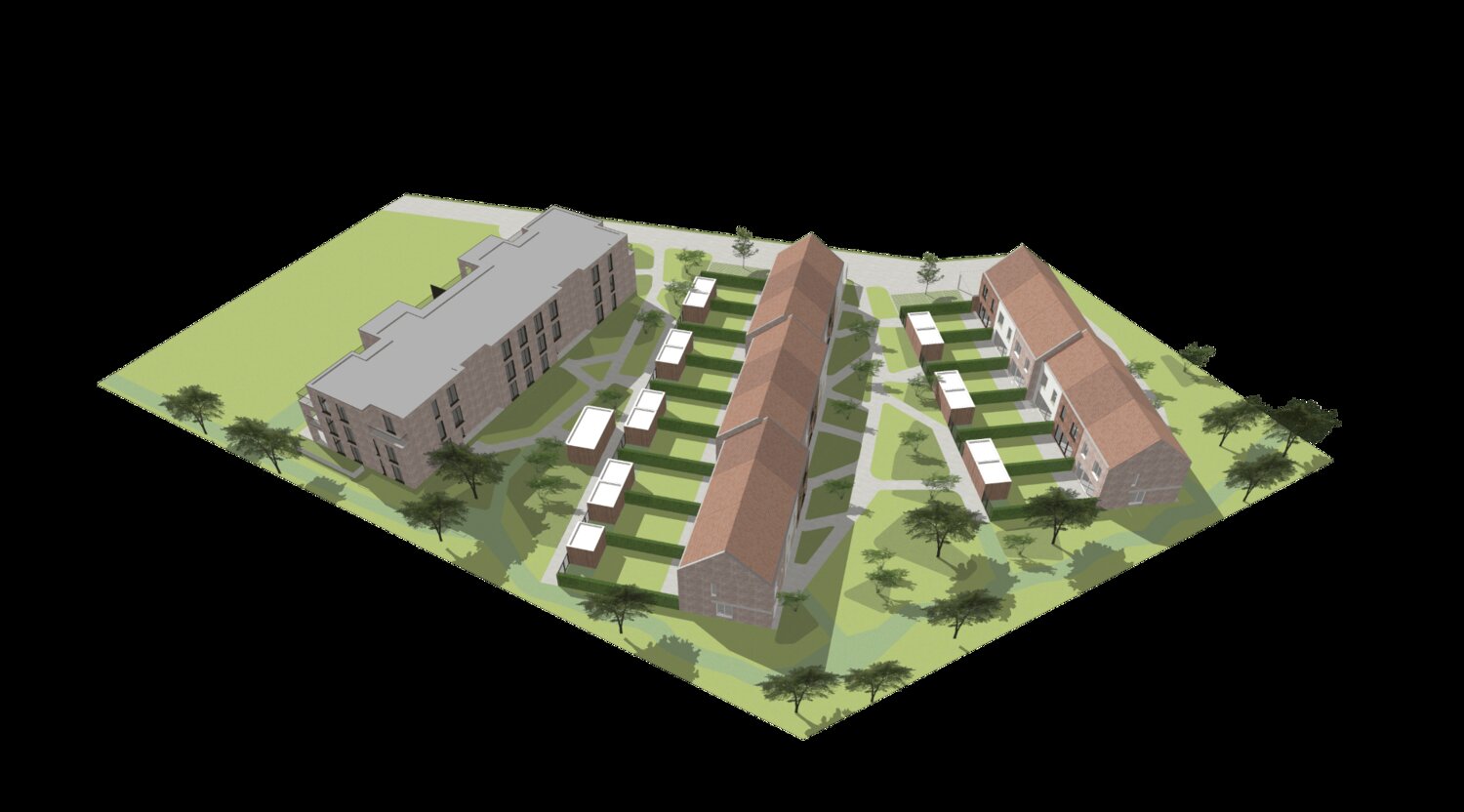 Le nouveau projet de construction consiste, d'une part, en une petite résidence de 15 appartements et, d'autre part, en 15 logements où la durabilité et l'efficacité énergétique sont essentielles.