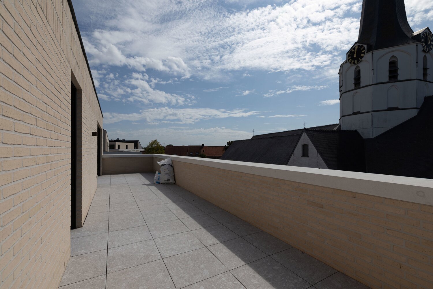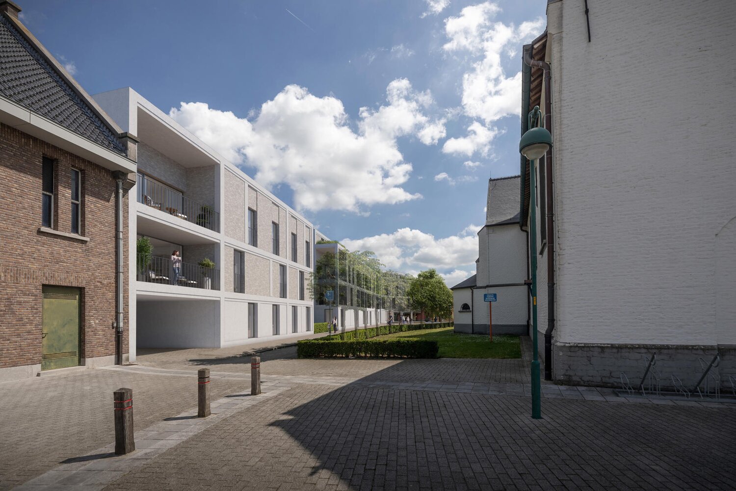 Nouveau projet immobilier dans le centre de Sleidinge, juste à côté du clocher de l'église de Sleidinge, commune d'Evergem.