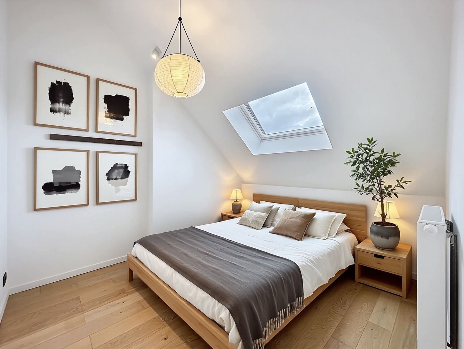 Le deuxième étage comprend deux chambres à coucher spacieuses, des toilettes séparées et une salle de bains luxueuse avec une douche à l'italienne et une baignoire confortable.