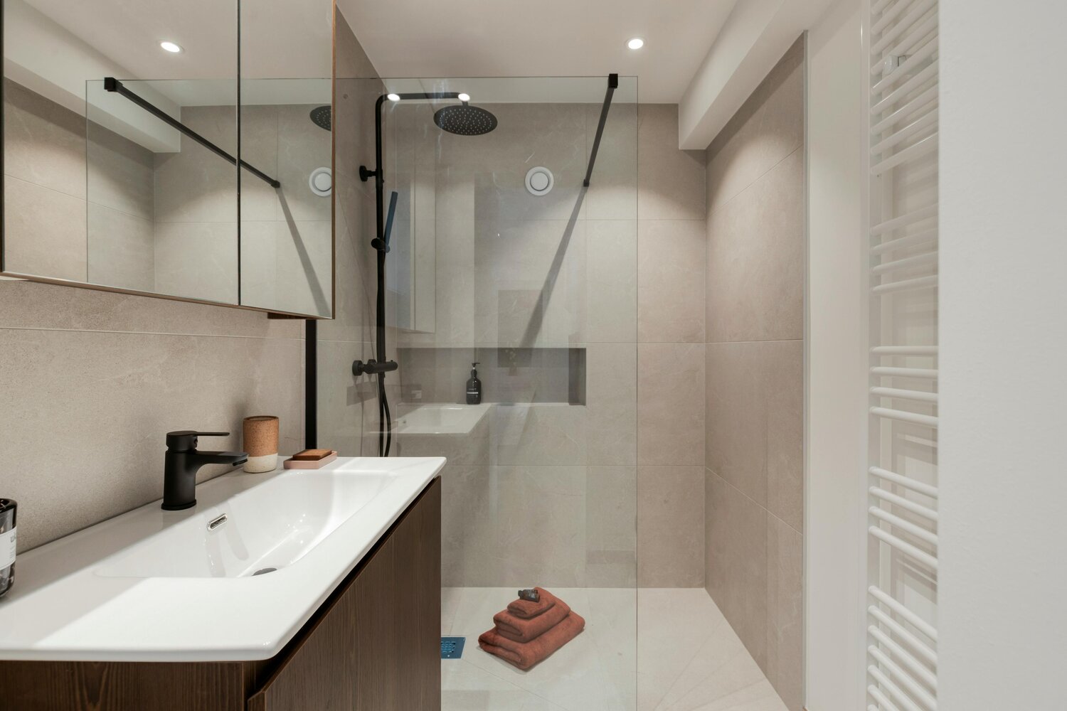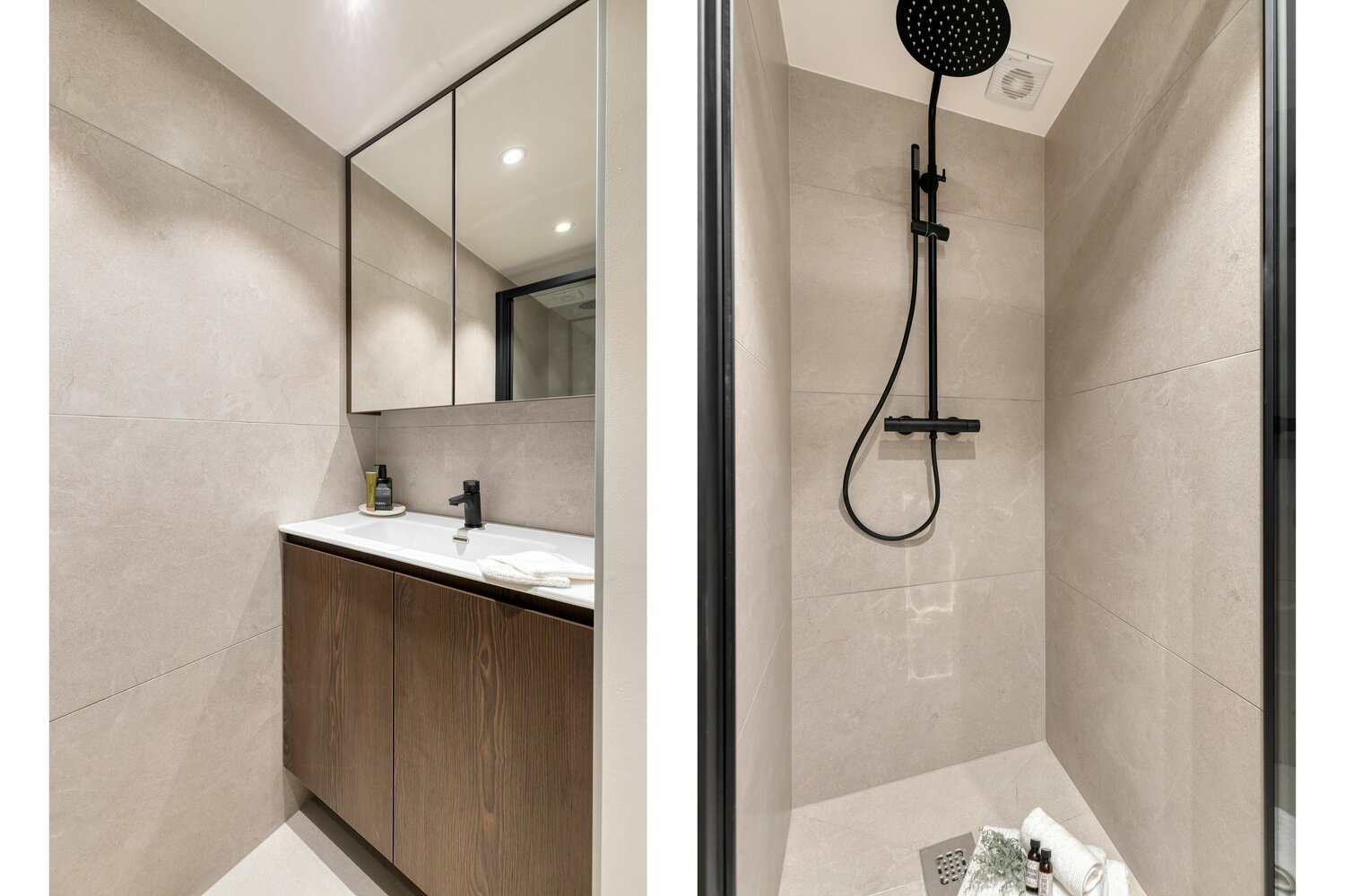- deux chambres à part entière, chacune dotée de placards intégrés et de sa propre salle de bains privative