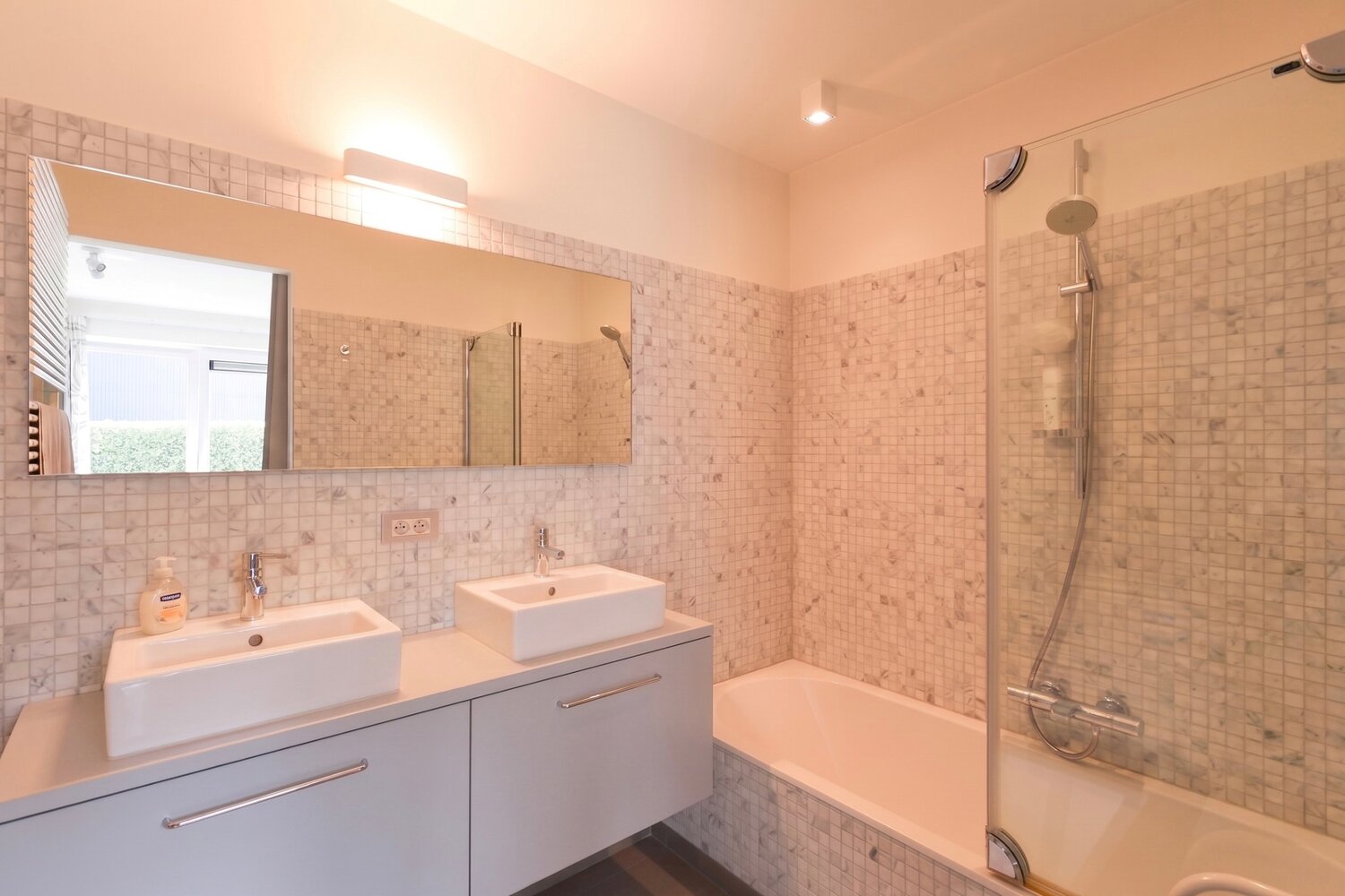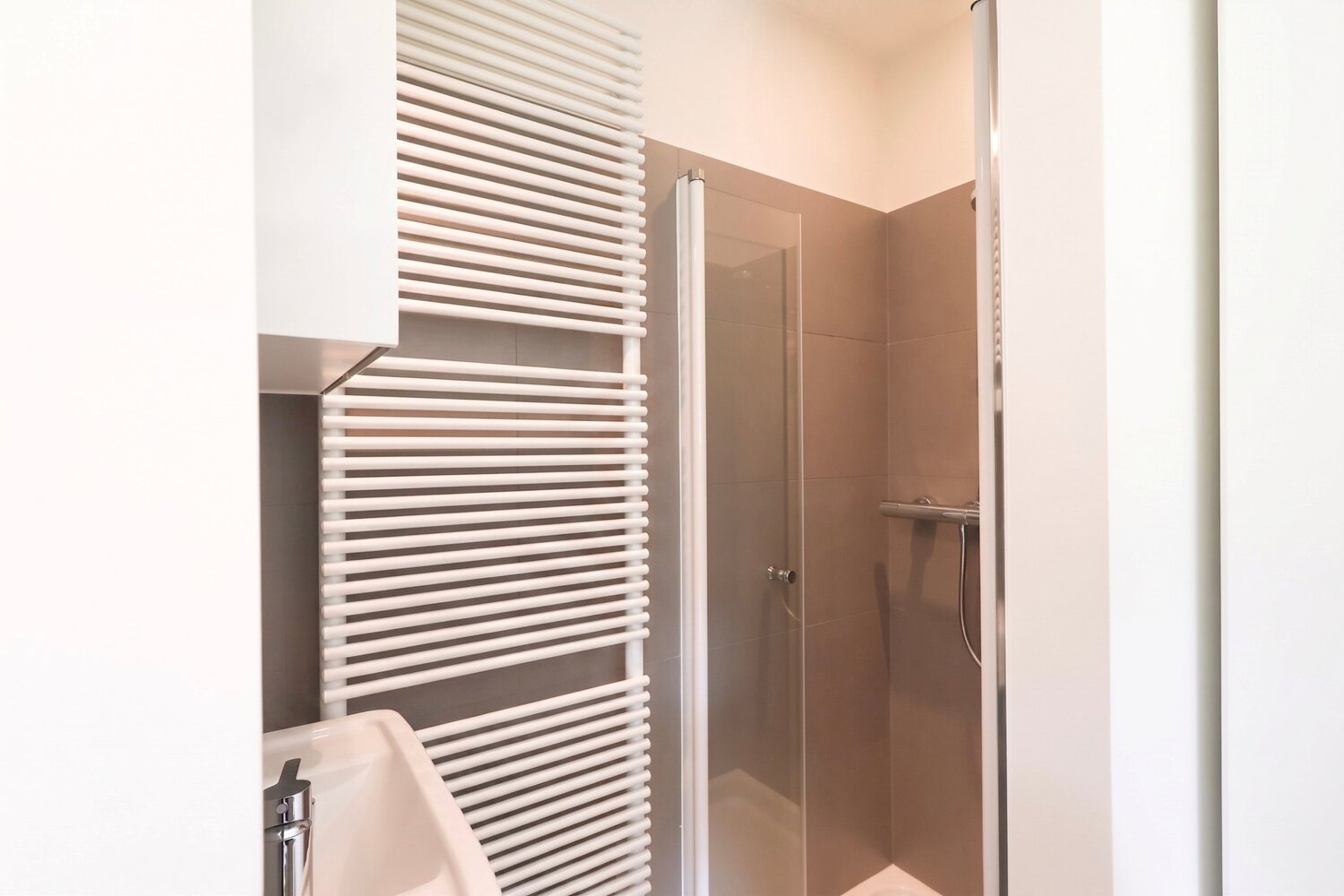 Verder beschikt het appartement over twee volwaardige slaapkamers, elk met een eigen badkamer, wat zorgt voor een optimaal comfort en functionaliteit.