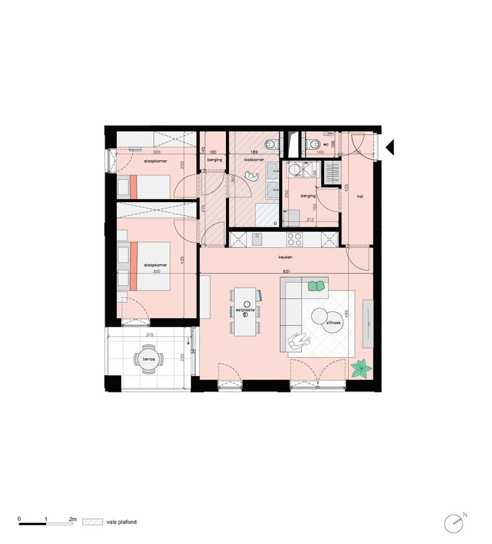Aan de leefruimte is er toegang tot het inpandig terras waardoor de gehele leefruimte geniet van veel lichtinval.