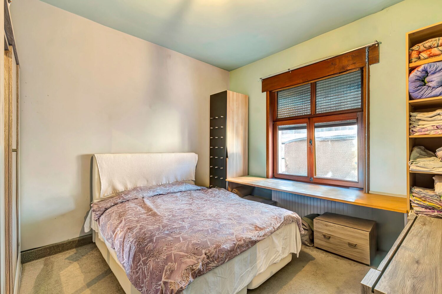 Voor meer info of een bezoek, bel 053 59 49 33 - Ruime gezinswoning met drie tot vier slaapkamers, kelder en zonnige tuin. Ontdek deze instapklare, ruime woning die ideaal is voor gezinnen die op zoek zijn naar comfort, ruimte en een aangename ligging. De woning beschikt over drie volwaardige slaapkamers, waarvan twee zich bevinden op de eerste verdieping, de master bedroom is voorzien van een dressing. De derde slaapkamer, gelegen op de zolderverdieping van maar liefst 40 m², biedt dankzij haar grootte de perfecte mogelijkheid om op eenvoudige wijze te worden opgesplitst in twee afzonderlijke kamers – ideaal voor een groter gezin of om een thuiskantoor en logeerkamer te combineren. De moderne, volledig ingebouwde open keuken vormt samen met de lichtrijke, ruime woonkamer het hart van de woning, waar gezelligheid en functionaliteit centraal staan. De badkamer is stijlvol ingericht en uitgerust met een inloopdouche, een dubbele lavabo en een toilet, in de inkomhal bevindt er zich ook een afzonderlijk toilet. Verder is er een handige berging aanwezig voor extra opbergruimte, én een kelder die tal van mogelijkheden biedt. Buiten geniet je volop van de zon op het zuidwest-georiënteerde terras en in de verzorgde tuin – perfect voor lange zomeravonden, barbecues of spelende kinderen. Deze woning combineert ruimte, comfort en een doordachte indeling in een aangename woonomgeving. Het platte dak werd volledig vernieuwd in 2023.