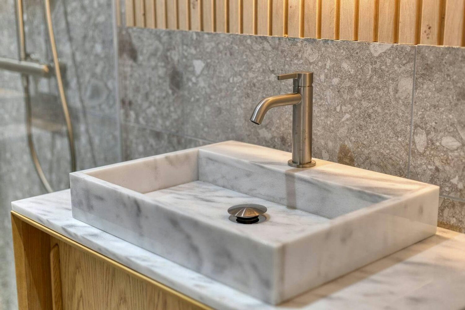 - salle de bain avec douche à l'italienne, toilettes et lavabo