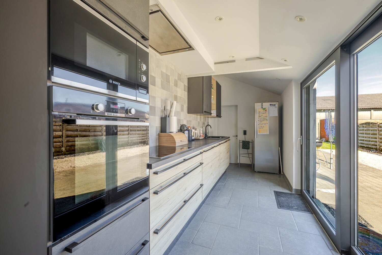 En entrant, vous êtes accueilli dans un espace de vie chaleureux qui s'ouvre naturellement sur la cuisine équipée, avec accès à la terrasse et au jardin.