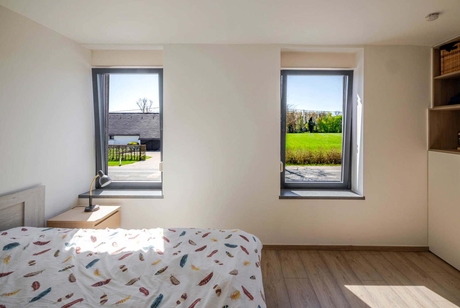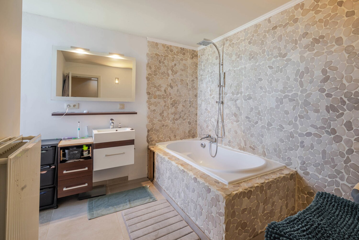 Au premier étage, vous trouverez 2 chambres et une salle de bains fonctionnelle avec baignoire-douche, lavabo avec meuble et des toilettes supplémentaires.