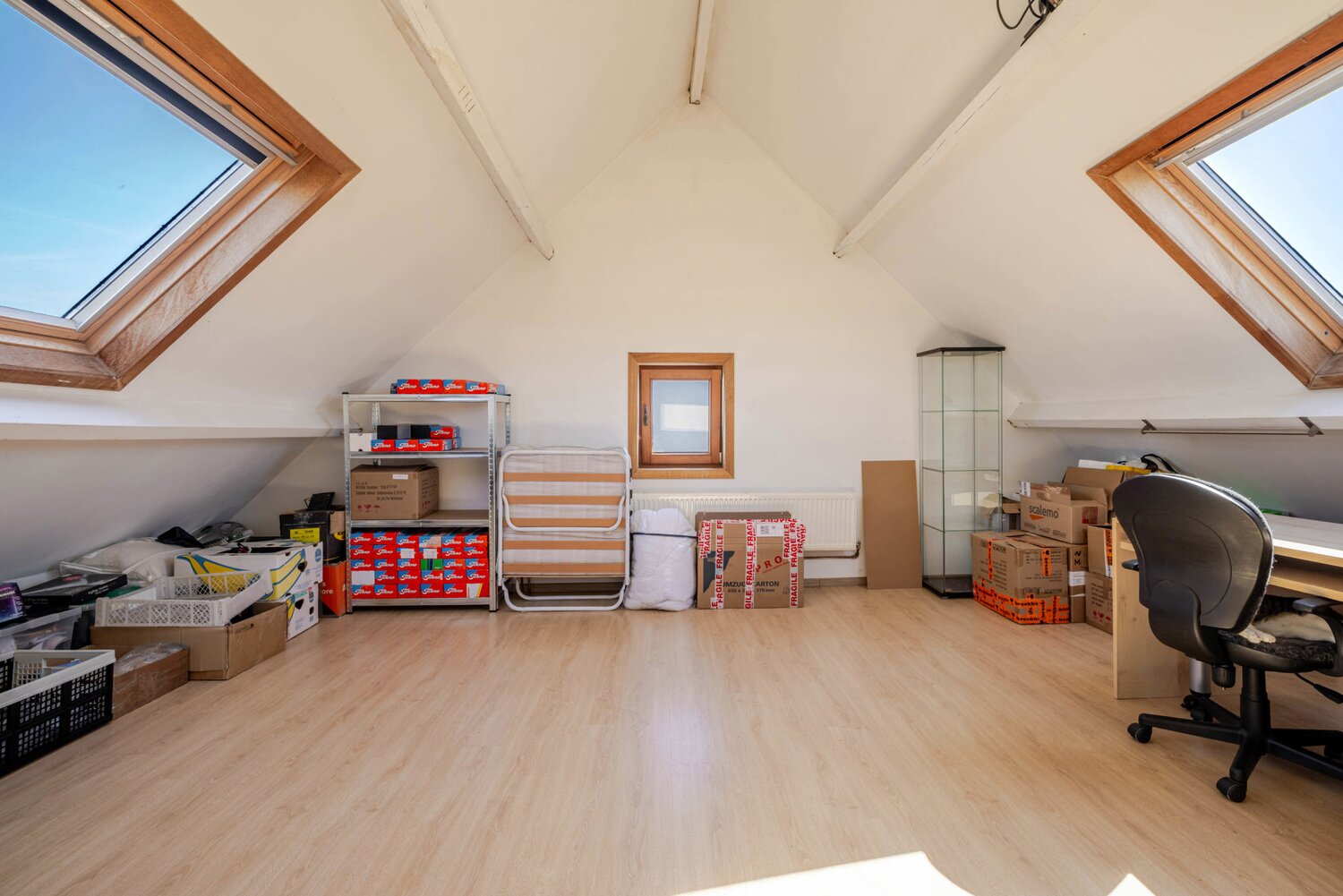 Un escalier fixe vous mène au grenier, où se trouve une grande pièce polyvalente, idéale comme troisième chambre, bureau ou espace de loisirs.
