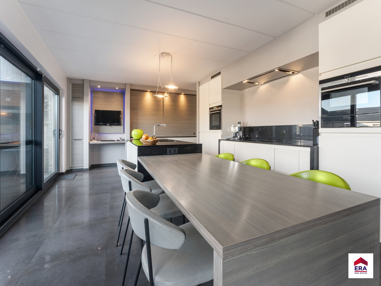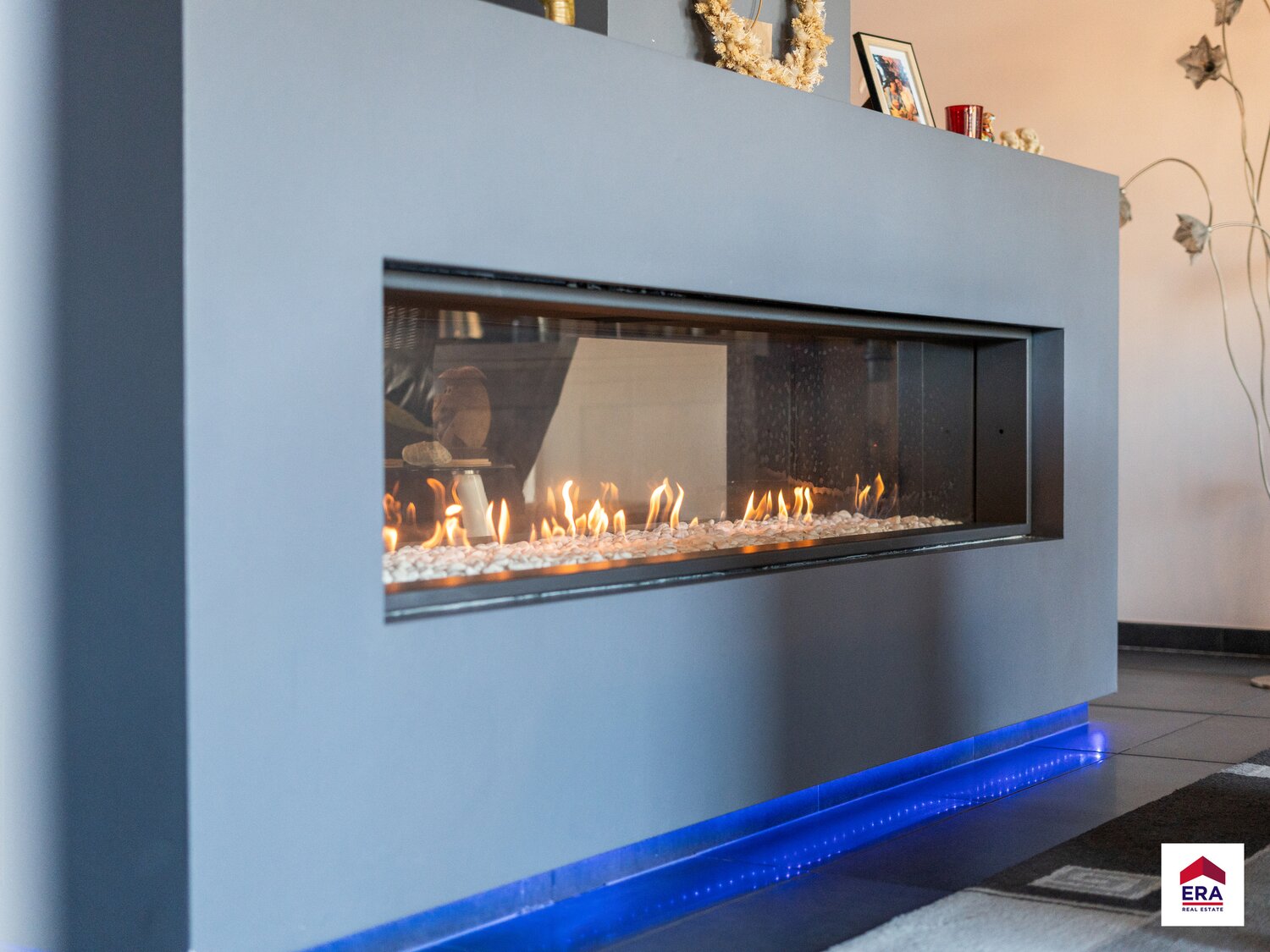 1e verdiep: woonkamer (63m²) met prachtige doorkijkhaard, open en volledig ingerichte keuken met bureel (14m²), koele berging, apart toilet, wasplaats, prachtig terras van 45m² met uniek uitzicht.