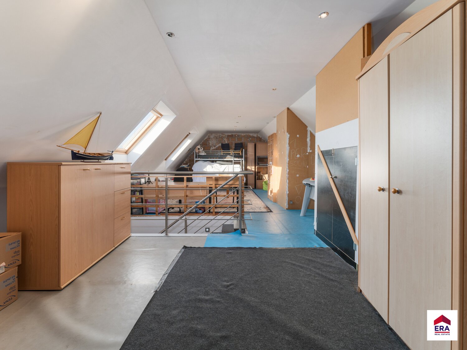 Derde verdiep: grote zolder. Kan verder afgewerkt worden tot slaapkamer met badkamer.