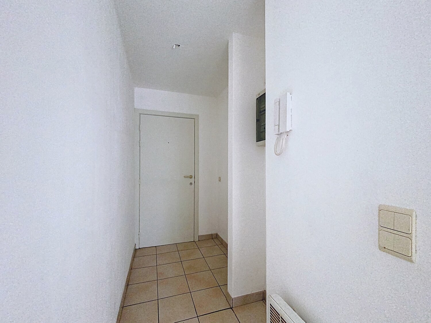 En entrant dans le studio, vous arrivez dans le hall d’entrée. Le séjour lumineux avec coin nuit bénéficie d’une agréable luminosité grâce à la grande fenêtre à l’avant du bâtiment, offrant une vue sur le parc Delphine Boël.
