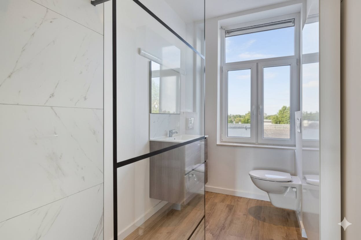 - salle de bain avec douche à l'italienne, lavabo et toilettes