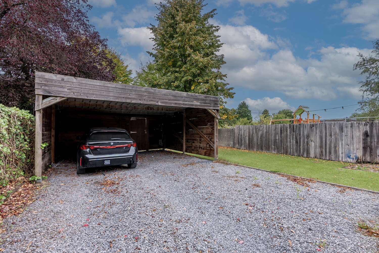 Naar buiten toe hebben we aansluitend aan de keuken een zalig volledig aangelegd terras, waar het in de zomer heerlijk vertoeven is. Tevens is er vooraan parkingplaats voor de gasten en achteraan een carport voor één wagen.