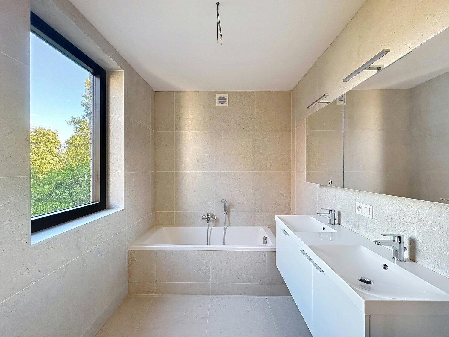 - salle de bain (9m²) avec baignoire, douche, double vasque et toilettes