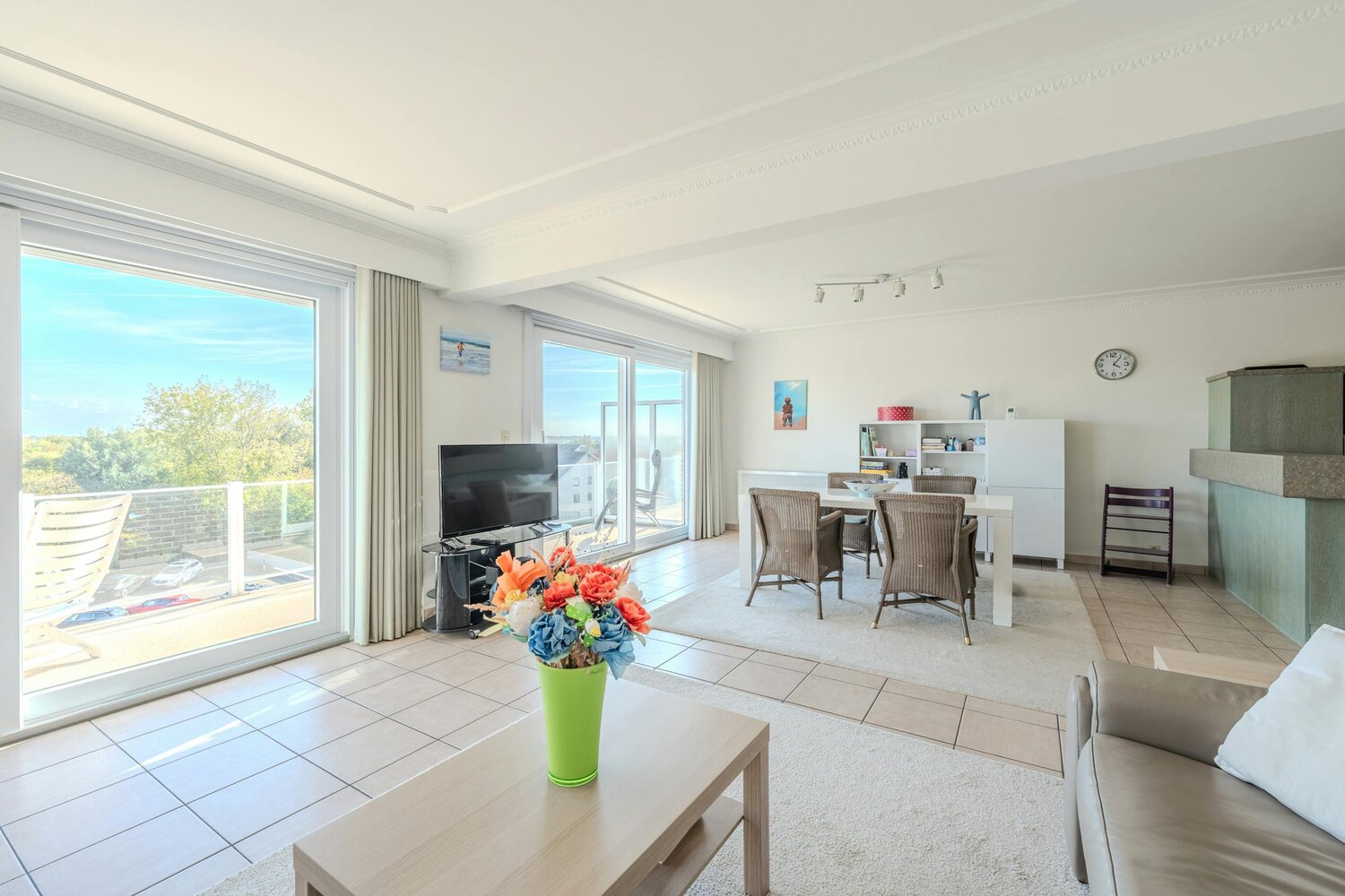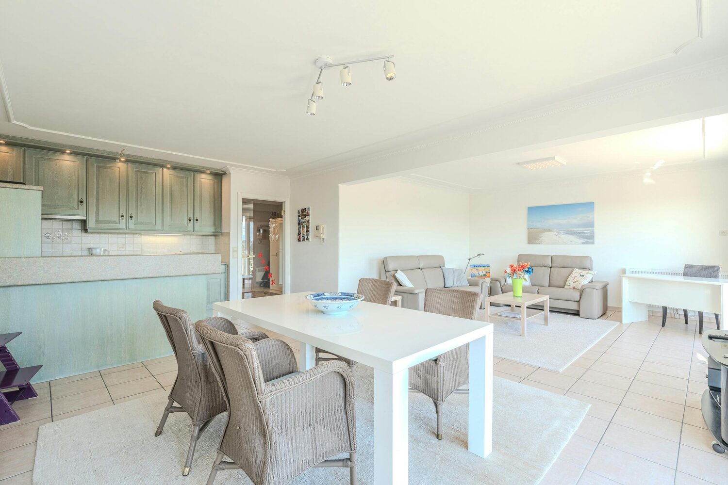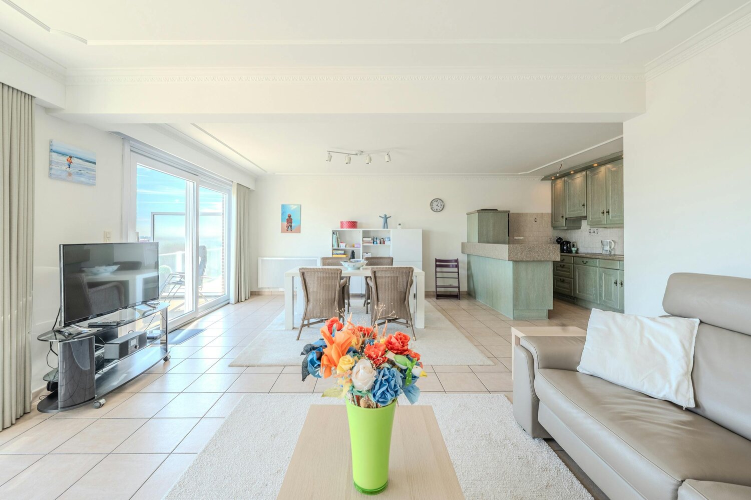 Appartement spacieux (98 m²) avec une grande terrasse orientée sud, 2 chambres et une belle vue sur le parc à vendre. Vous bénéficiez d'un emplacement très central, à proximité des commerces, de Zeedijk et du nouveau casino, Koninginnelaan 37, au quatrième étage de la résidence The't Park à Middelkerke.