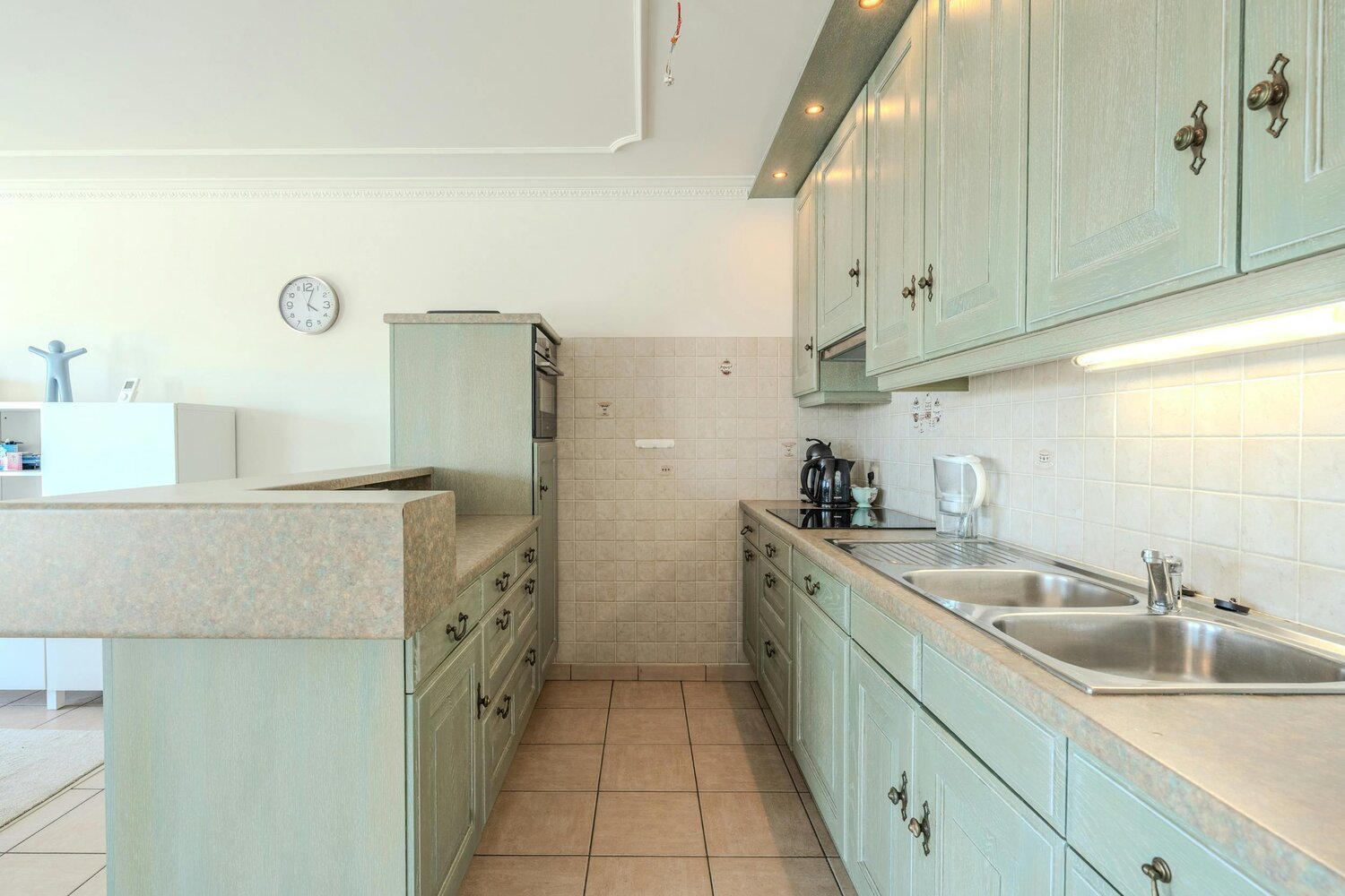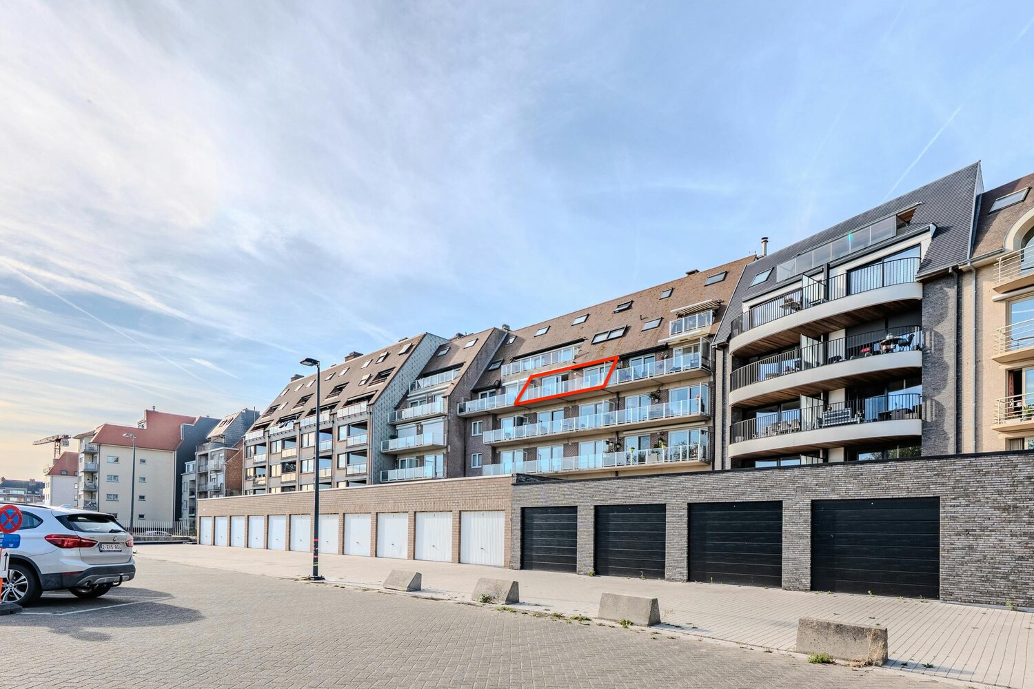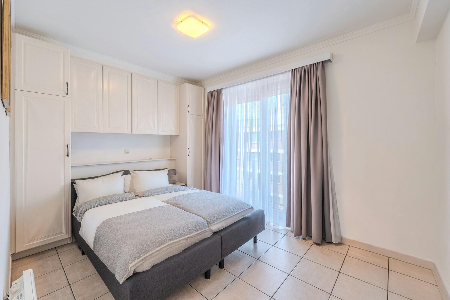 Appartement spacieux (98 m²) avec une grande terrasse orientée sud, 2 chambres et une belle vue sur le parc à vendre. Vous bénéficiez d'un emplacement très central, à proximité des commerces, de Zeedijk et du nouveau casino, Koninginnelaan 37, au quatrième étage de la résidence The't Park à Middelkerke.