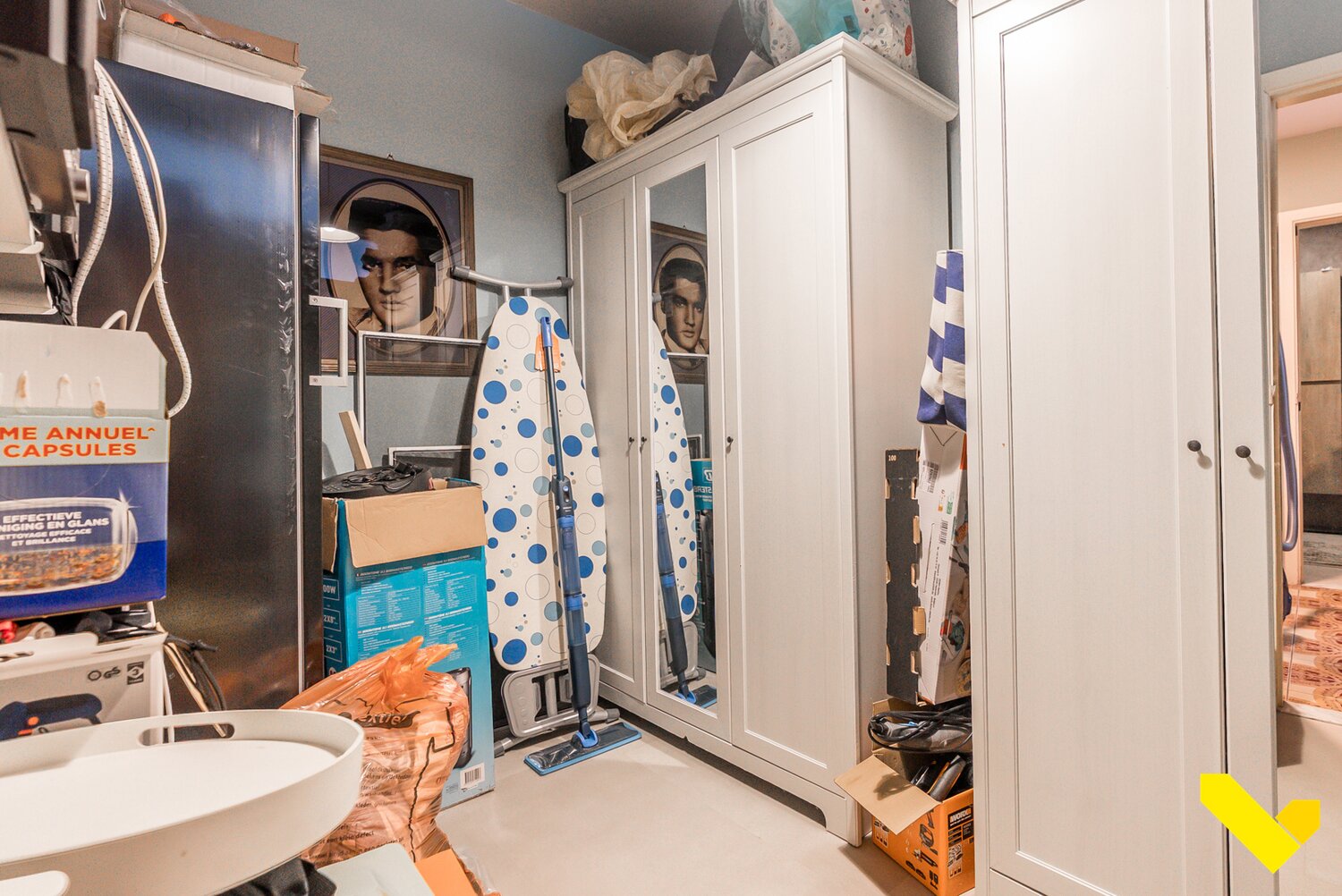 Gemeenschappelijke fietsenberging in de kelder. Ruime garage verplicht bij te nemen tegen een meerprijs van 20.000€.