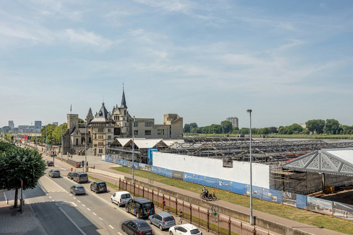 Aan de Scheldekaaien met fraai zicht bevindt zich dit appartement op wandelafstand van de Grote Markt en de Meir.