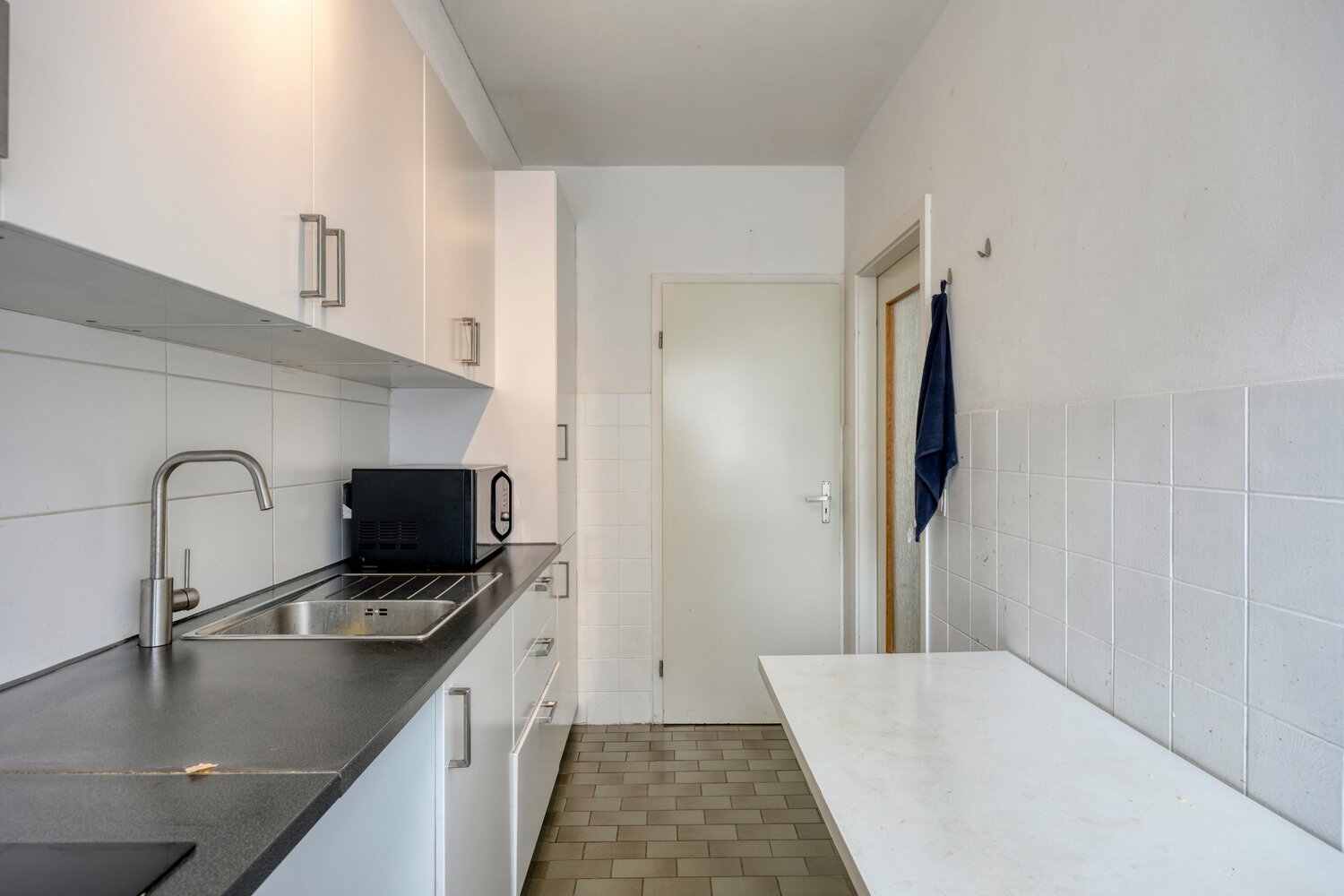 Lorsque vous entrez dans l'appartement, vous vous trouvez dans un hall d'entrée doté de placards intégrés pratiques. Depuis le hall, vous accédez à l'espace de vie lumineux où une grande fenêtre coulissante donne accès à la première terrasse. À côté du salon se trouve la cuisine meublée et rénovée, qui dispose également d'un débarras attenant pratique. Le hall de nuit vous mène ensuite aux autres pièces : 2 chambres complètes, la plus petite avec accès à une deuxième terrasse à l'arrière. En outre, il y a une troisième pièce que vous pouvez décorer complètement à votre guise comme dressing, bureau ou salle de loisirs. Il y a également des toilettes pour les invités et une salle de bains, toutes deux rénovées en 2024.