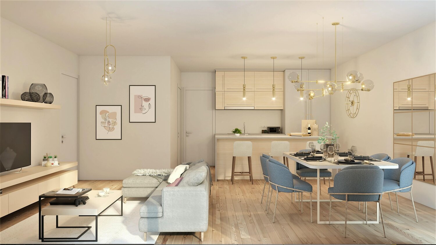- salon avec cuisine ouverte