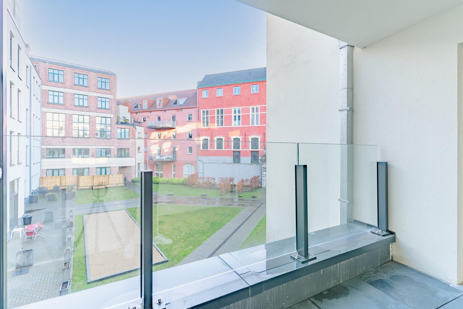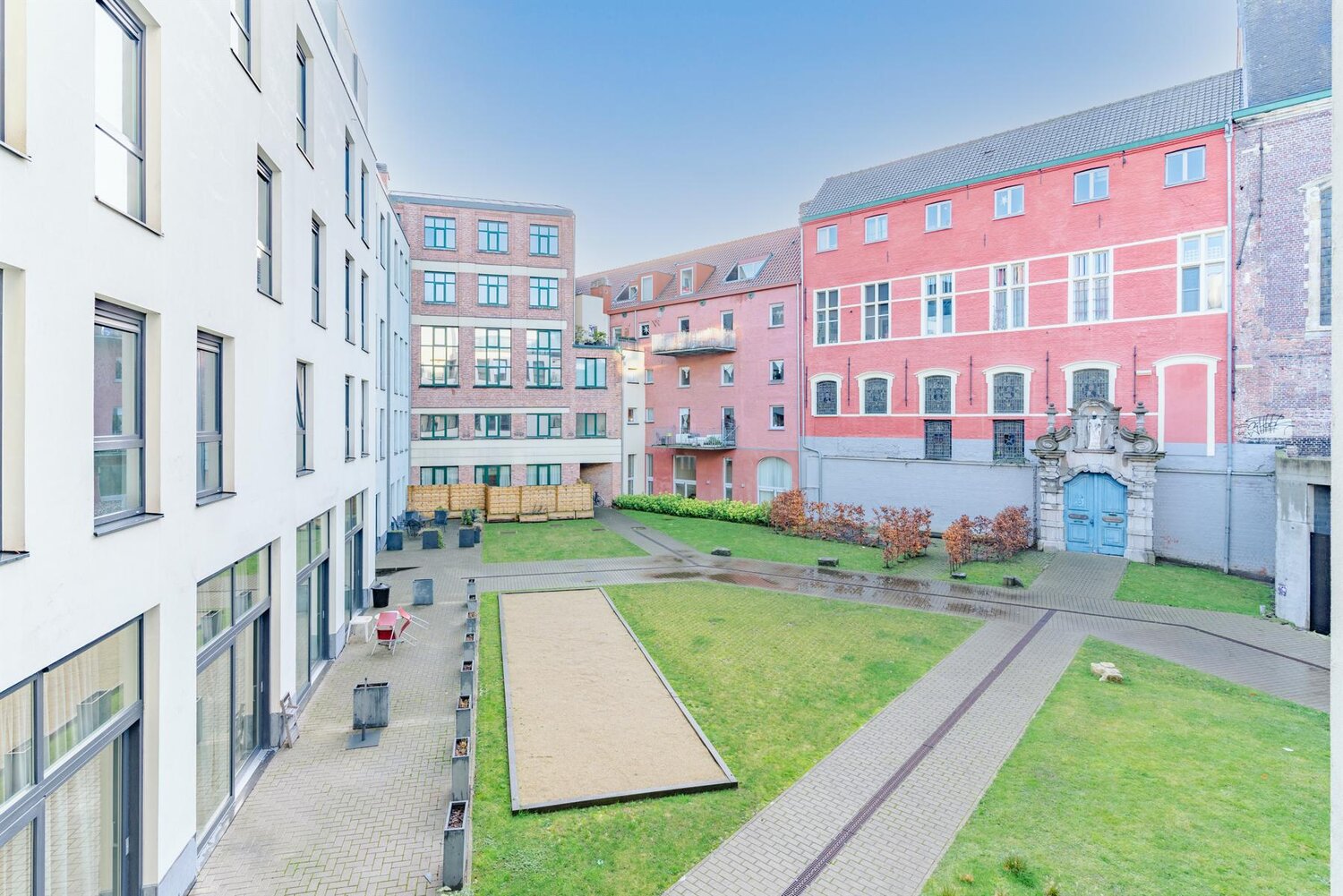 Als bewoner van deze residentie kan u gebruik maken van de gemeenschappelijke ruimte op het gelijkvloers alsook van de prachtige binnentuin waar u rustig kan vertoeven.
