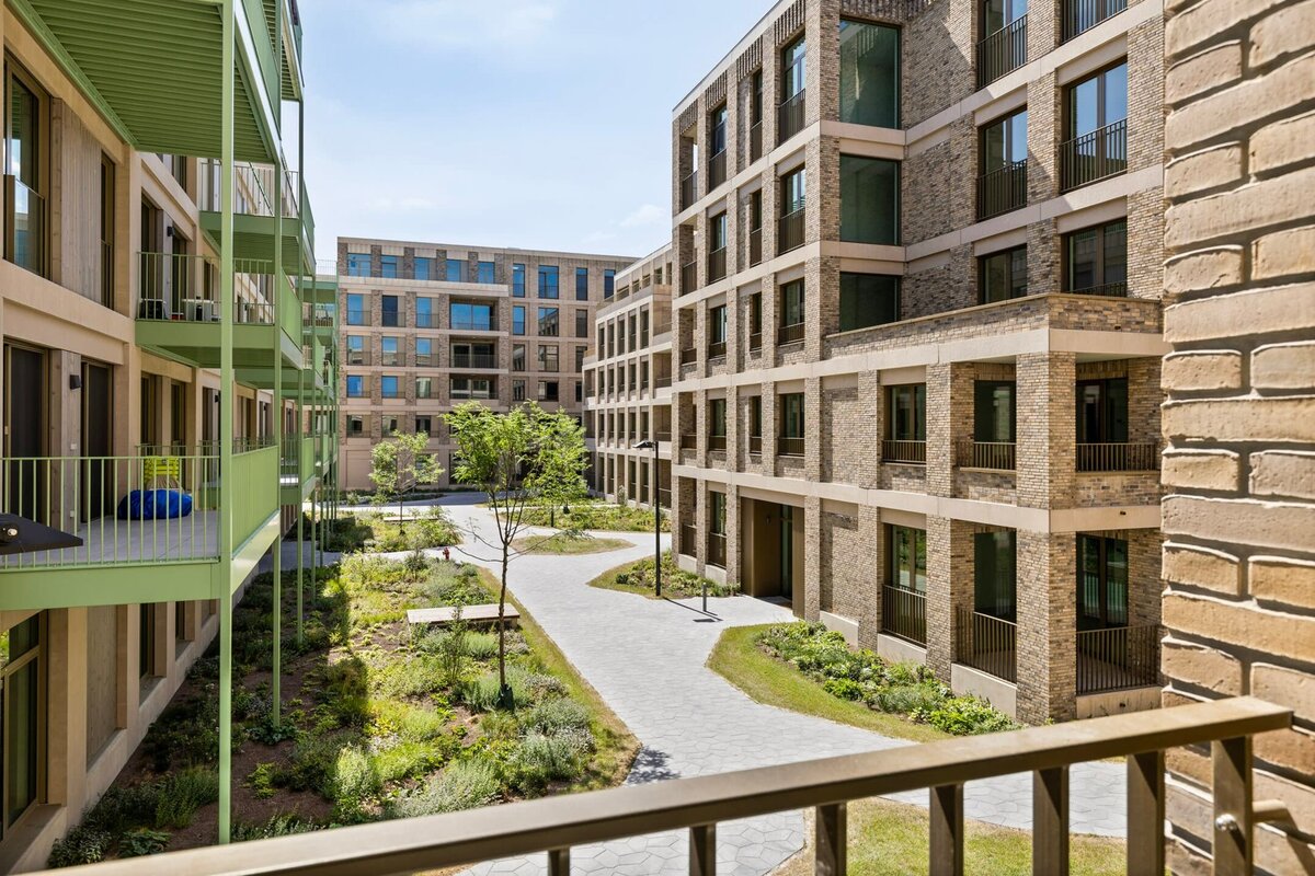 Dit hoekappartement op de tweede verdieping heeft een bewoonbare oppervlakte van 91m² en een terras met zicht op de binnenhof.