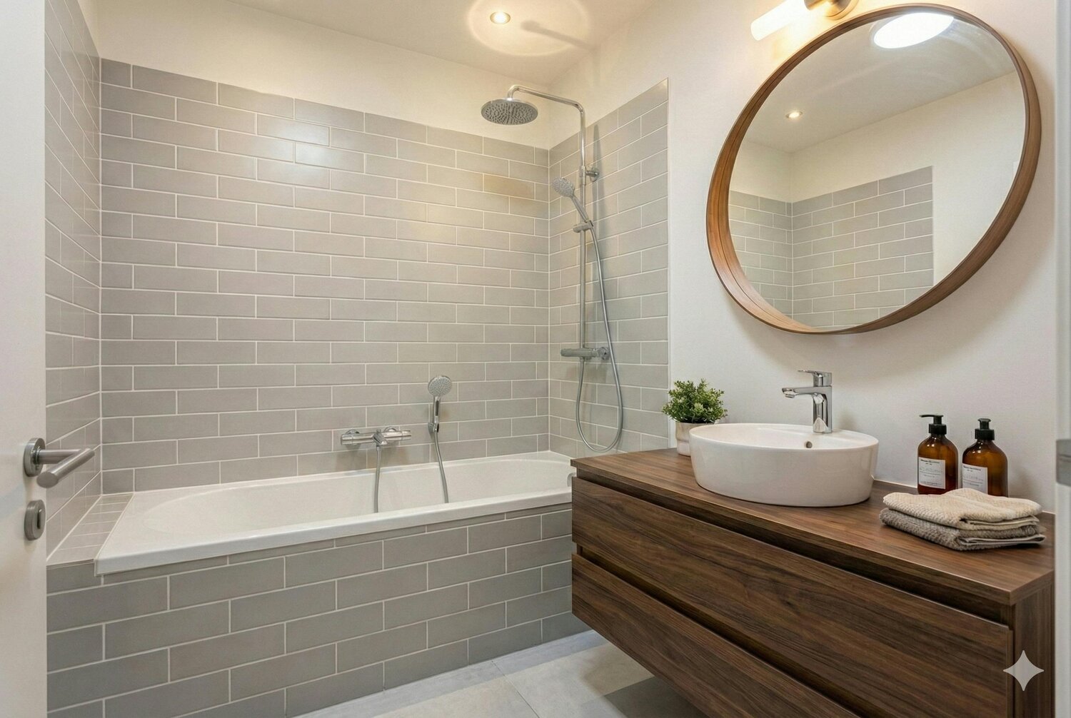 - une salle de bains avec baignoire,