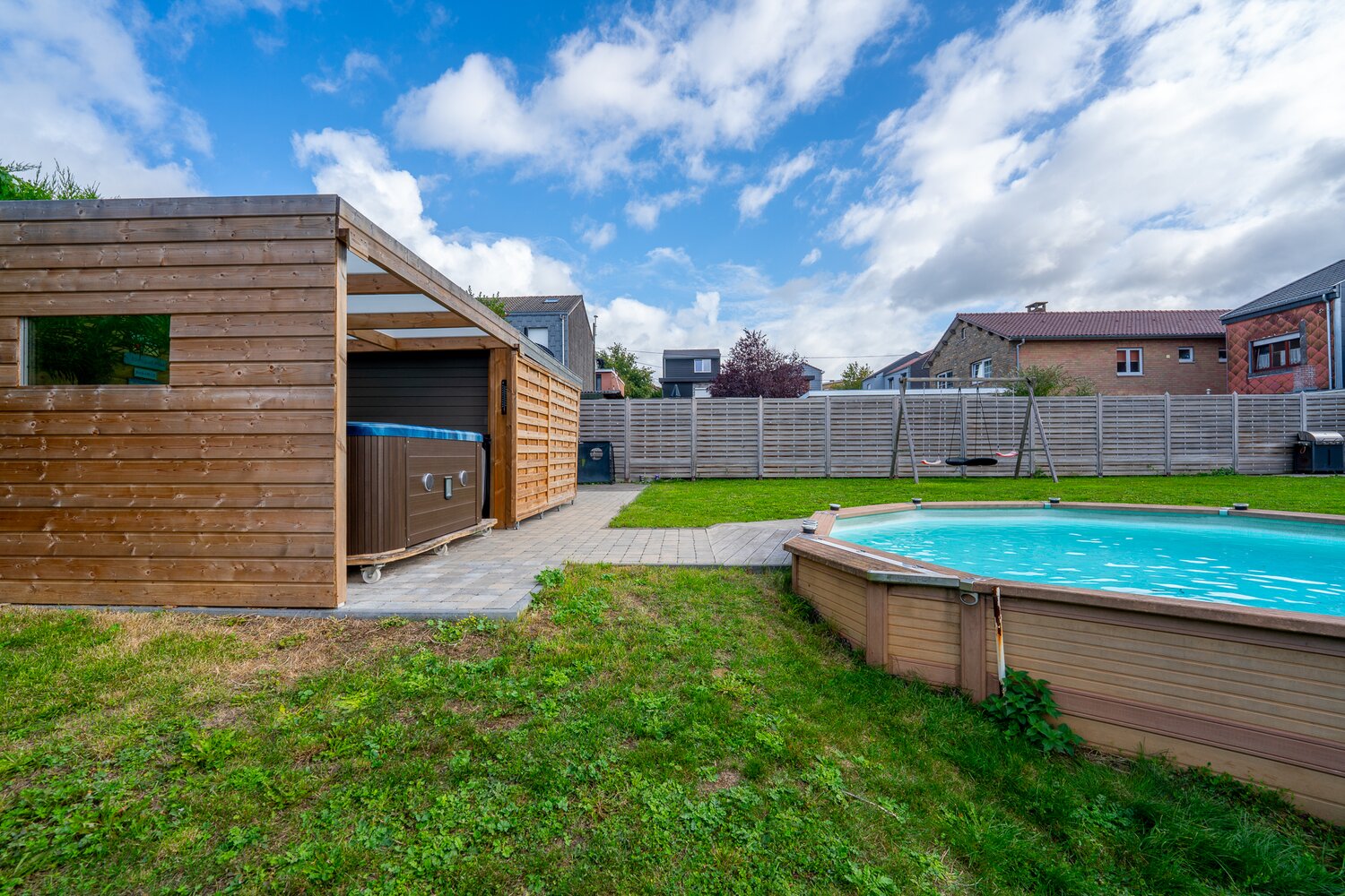 ERA Blavier stelt u deze grote eigendom voor, die alles biedt wat u wenst: royale leefruimtes, 5 slaapkamers, 2 badkamers, en een prachtige tuin met terras, zwembad en jacuzzi.