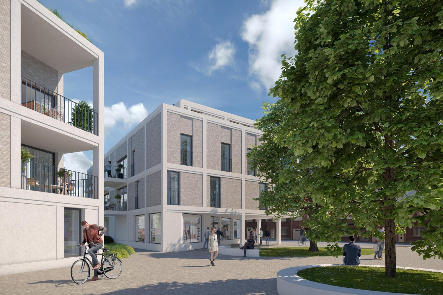 Nouveau projet immobilier dans le centre de Sleidinge, juste à côté du clocher de l'église de Sleidinge, commune d'Evergem.