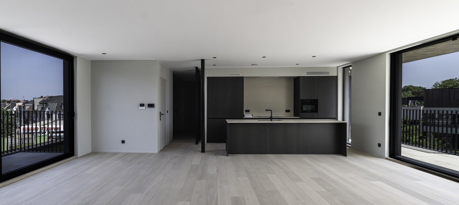 Emplacement Ces appartements neufs à Merelbeke, construits clés en main et économes en énergie, offrent un cadre de vie luxueux dans un endroit de premier choix. Située à proximité du centre animé, avec un accès facile aux autoroutes R4 et E40, cette propriété allie tranquillité, accessibilité et confort. Les commerces, les écoles, les transports en commun et les divertissements sont tous accessibles à pied. Aménagement et finitions Le penthouse comprend 2 chambres spacieuses avec placards, 2 salles de bains (dont une en suite), des toilettes pour les invités, un débarras séparé et une cuisine de grande qualité. La porte pivotante en verre à hauteur de plafond mène à l'espace de vie lumineux, fini avec des matériaux de qualité et des spots intégrés. Grâce à la présence de deux terrasses et à l'utilisation de grandes baies vitrées, la lumière ne manque pas. L'appartement du premier étage comprend quatre chambres à coucher, dont deux très spacieuses avec placards, deux salles de bains (une en suite et une avec baignoire et toilettes supplémentaires), deux toilettes pour invités, un débarras de cuisine, un débarras technique et une cuisine de haute qualité ainsi qu'une porte pivotante en verre à hauteur de plafond, finie avec des matériaux de haute qualité et des spots encastrés. L'appartement dispose d'une terrasse de 45 m2 orientée vers le sud. Avantages : Nouvelle construction économe en énergie Terrasse spacieuse orientée au sud Armoires encastrées et finitions de qualité Grand garage box au penthouse, double box au 1er étage, garage à vélos et débarras privé Achat possible à 6% de TVA (si applicable). Nouveau pour les investisseurs : le taux de TVA de 6 % s'applique désormais également aux achats loués pendant 15 ans (sous réserve des conditions légales applicables). Cela réduit le coût d'achat et peut améliorer considérablement votre rendement net. Contactez nous pour plus d'informations ou un rendez-vous