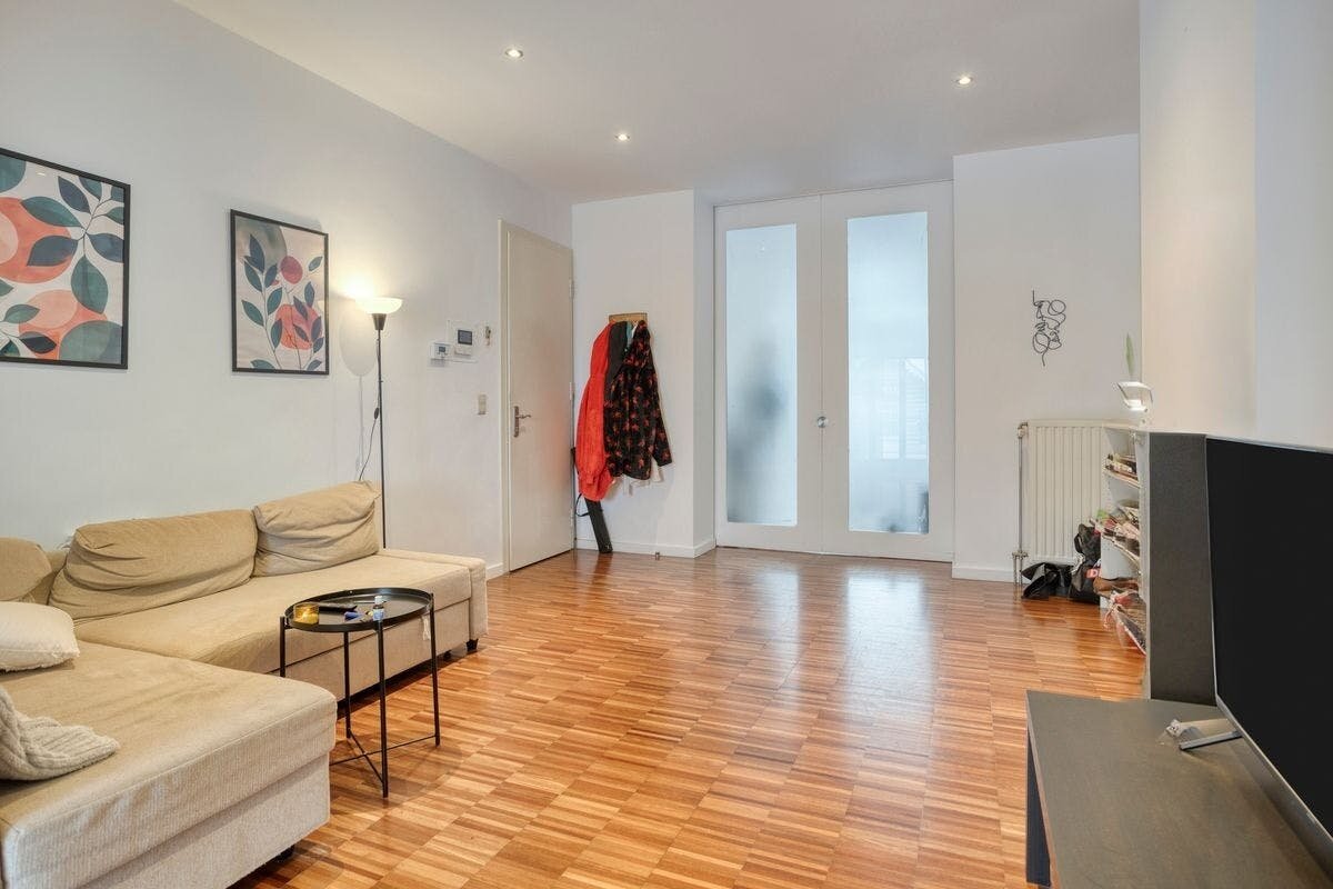 Appartement lumineux d’une chambre (94 m²) situé sur la Chaussée de Waterloo à Ixelles, à distance de marche de Chatelâin, Parc Ten Bosch, de l’Avenue Louise, du Bois de la Cambre, des transports en commun et de toutes les commodités nécessaires.