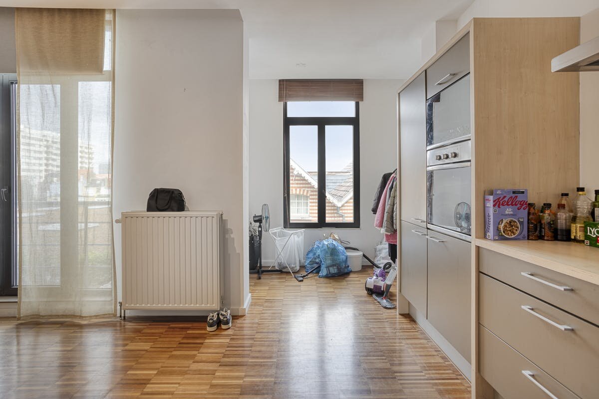 L’appartement (PEB D) se trouve au deuxième étage et comprend un vaste séjour avec salle à manger, une cuisine entièrement équipée, une grande chambre, une salle de bain séparée et une toilette séparée.