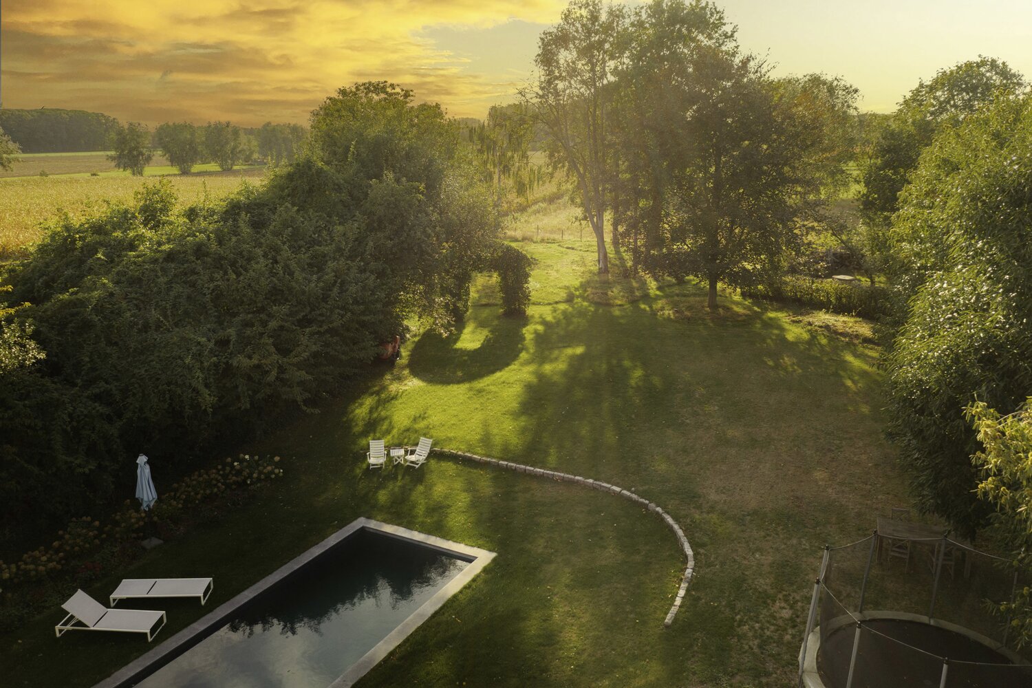 Cette villa est située dans la campagne de Laarne, sur un terrain de 5 336 m².