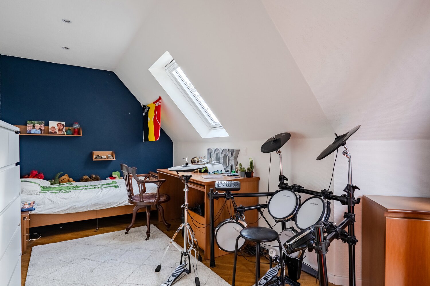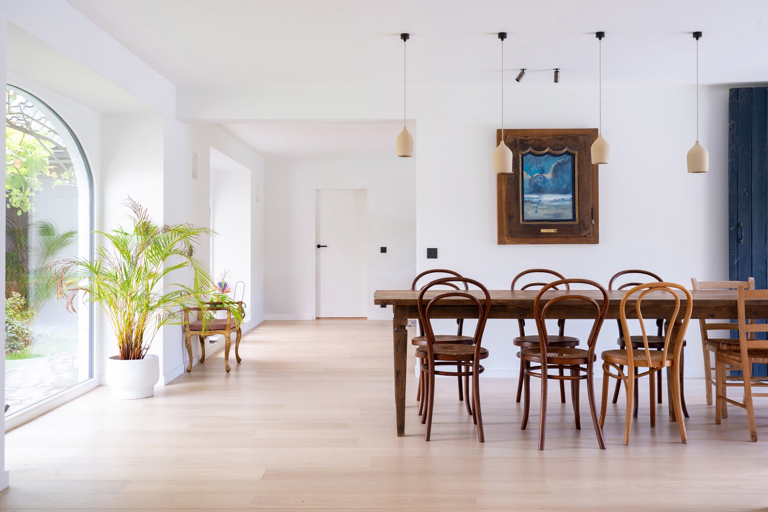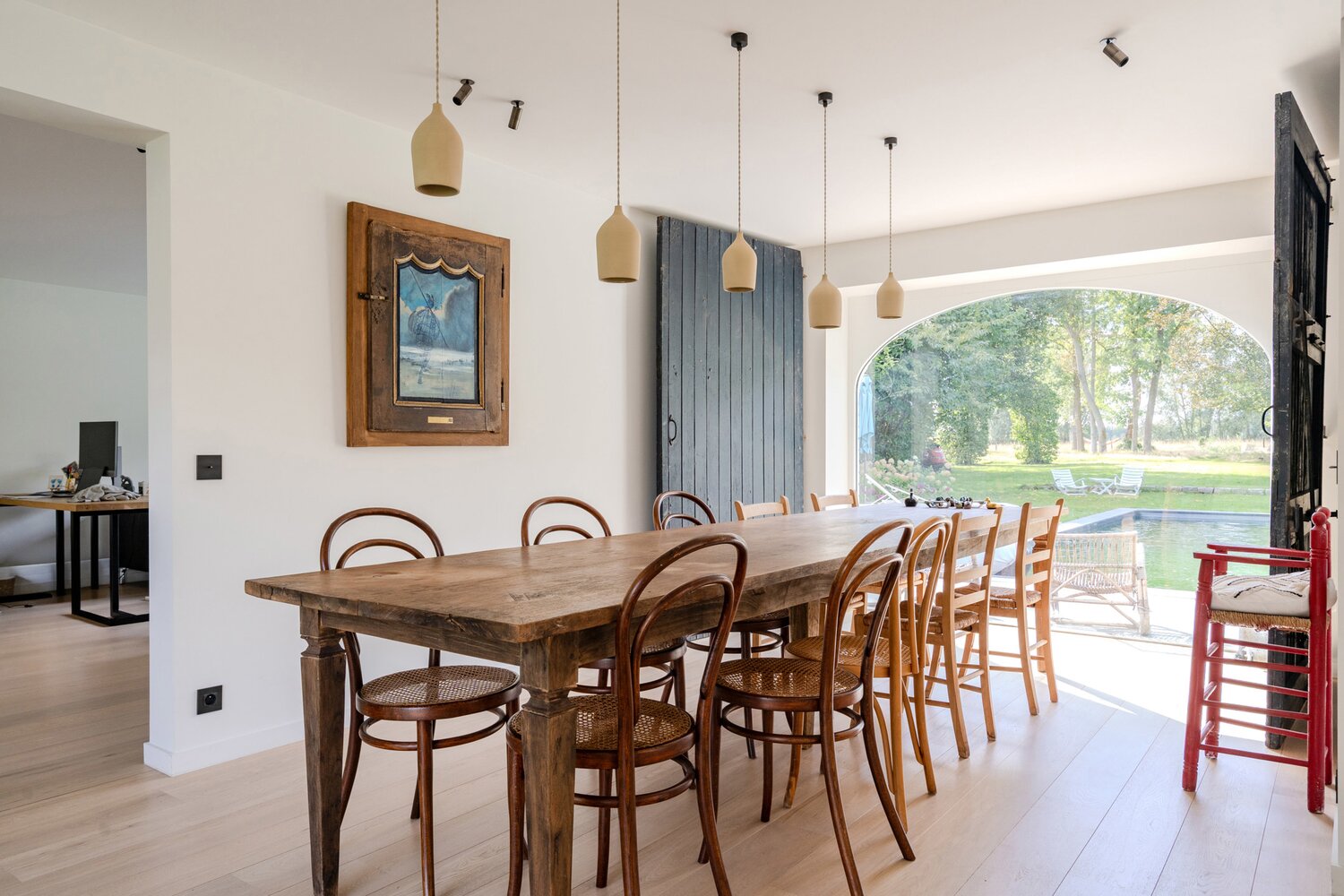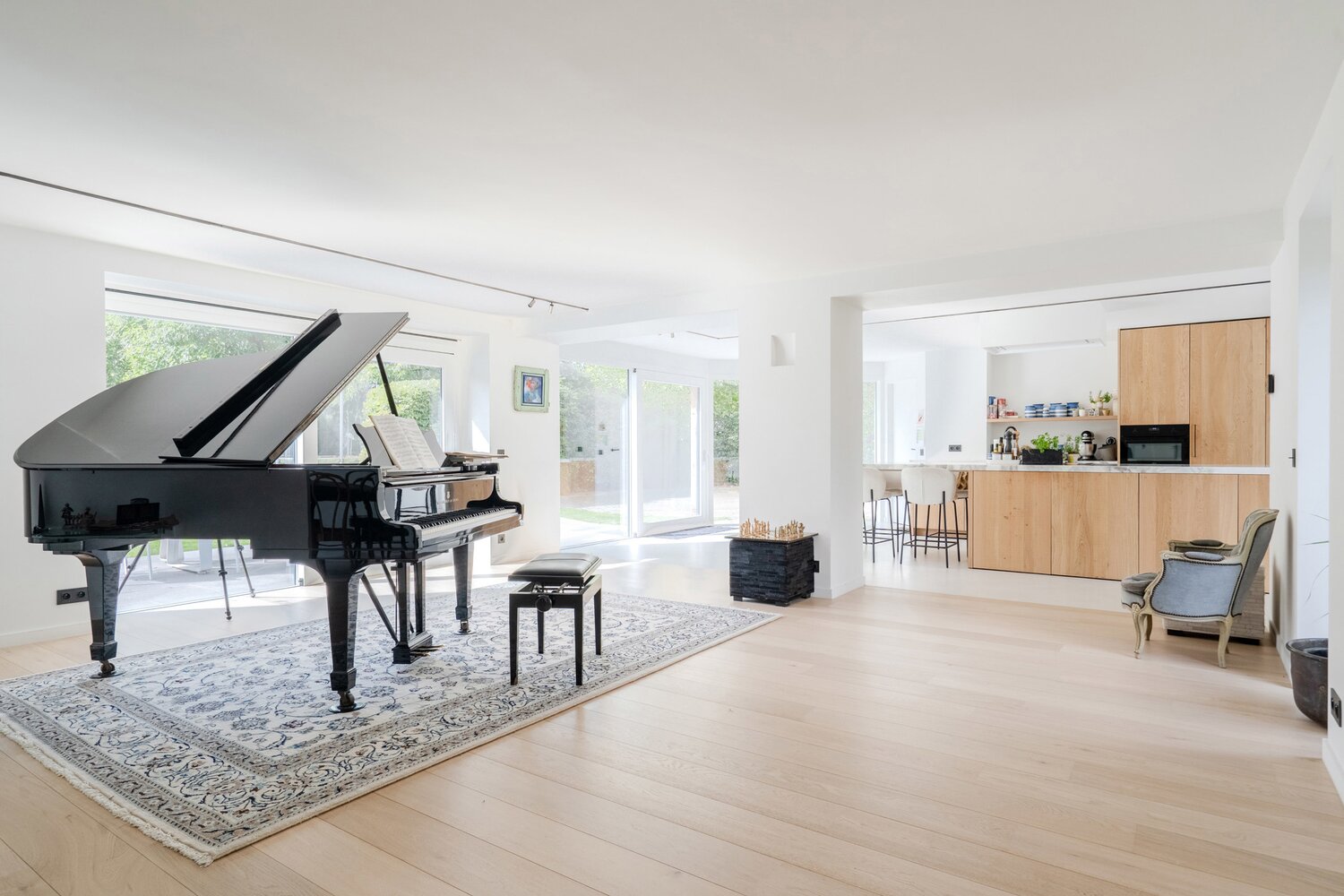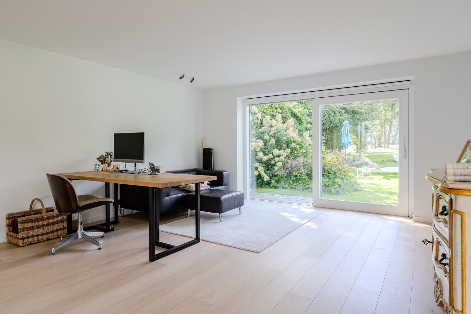 Depuis la cuisine équipée, le salon, la salle à manger et le bureau, vous profitez de la connexion avec le jardin avant et arrière. La finition et la luminosité de ces pièces sautent immédiatement aux yeux.