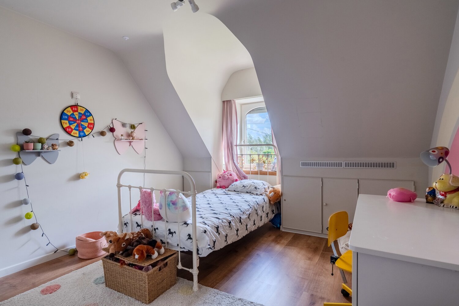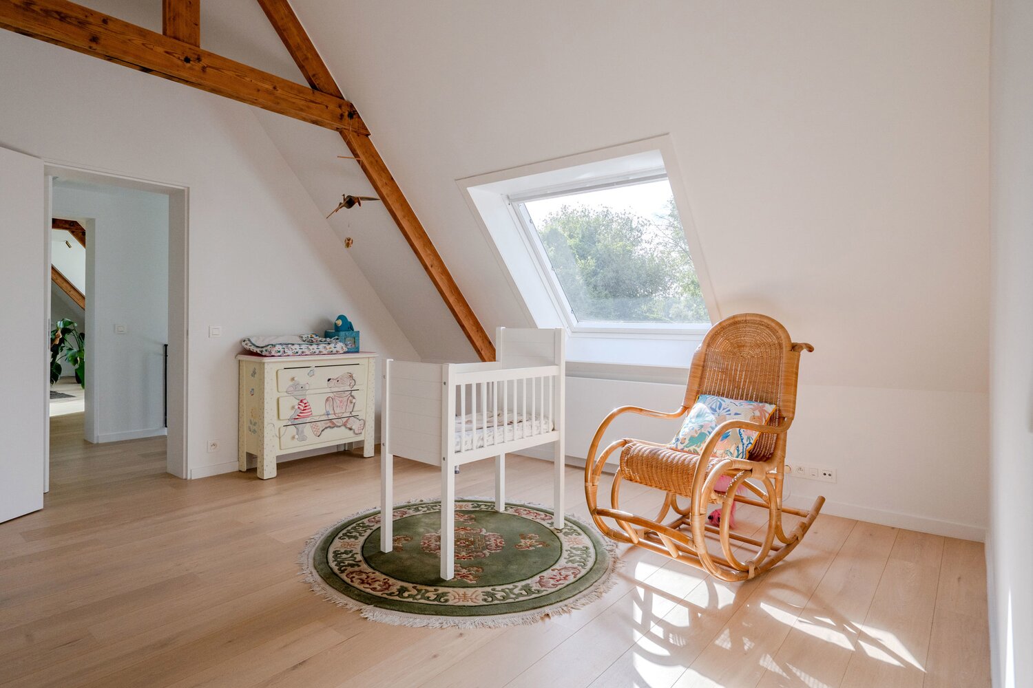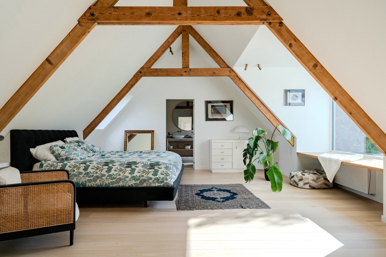 À l'étage, vous trouverez 7 chambres, dont la chambre principale qui offre une vue magnifique sur le jardin et les champs à l'arrière. Cette pièce, qui est attenante à la salle de bains principale, a été finie dans les moindres détails.