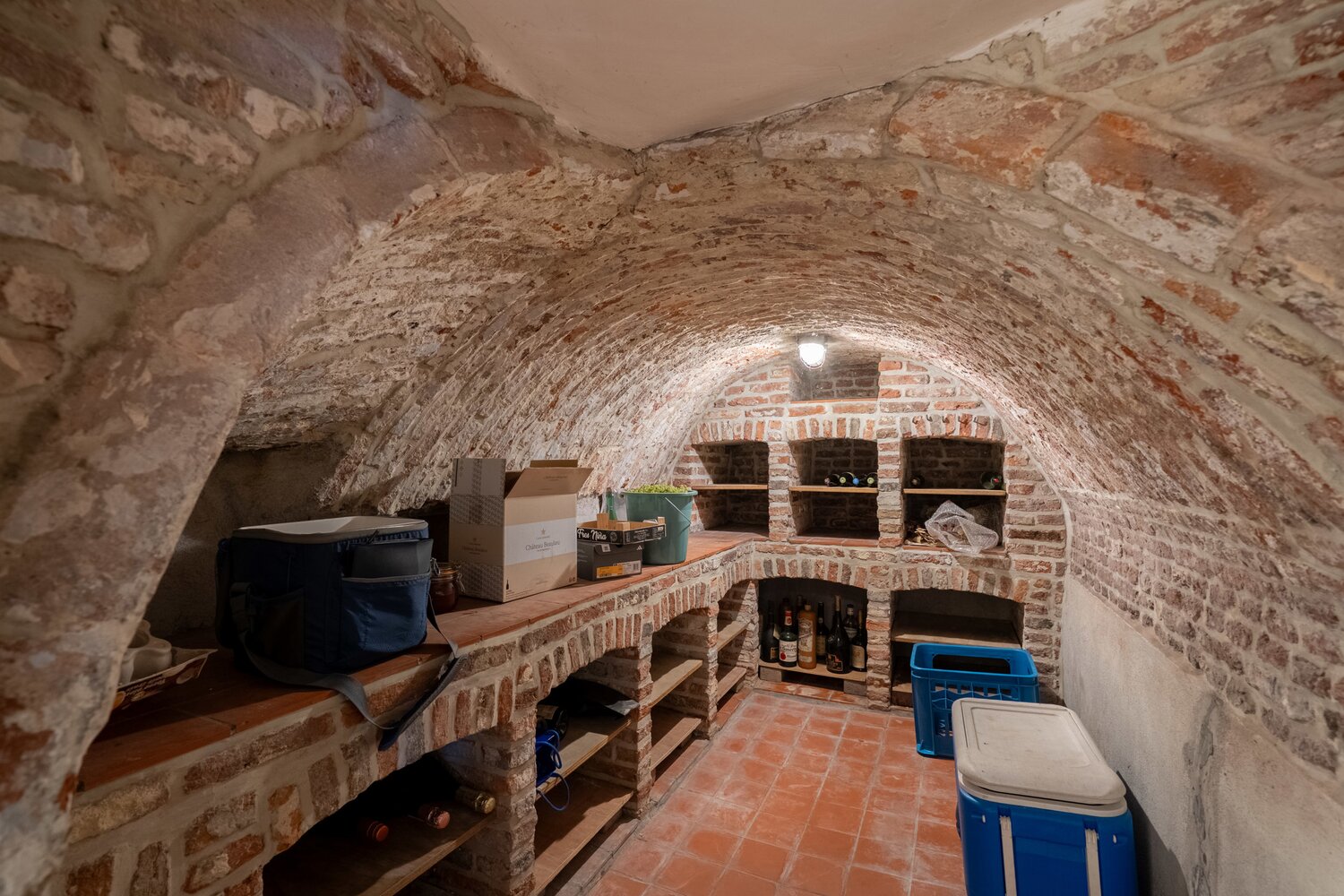 Au rez-de-chaussée, vous trouverez quelques pièces techniques et pratiques, telles qu'une arrière-cuisine, une buanderie, un local technique pour la piscine, une salle de douche supplémentaire et des toilettes pour quand vous rentrez de l'extérieur.