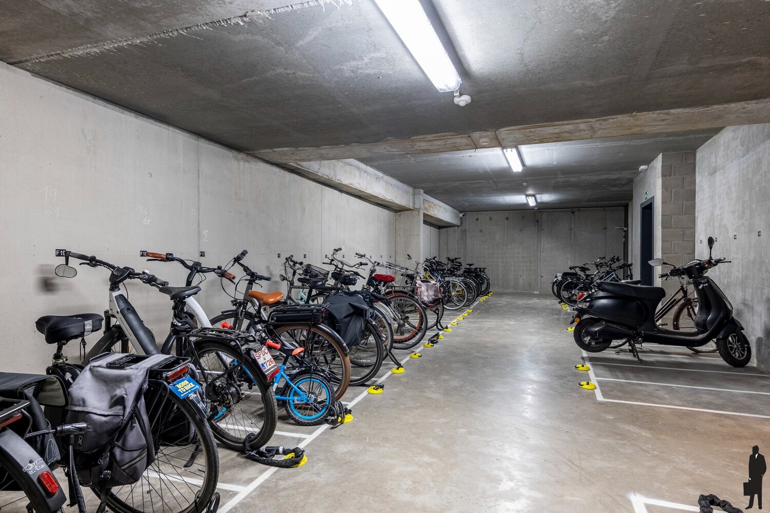 In de kelderverdieping van het gebouw heeft u uw eigen autostaanplaats, ruime berging en privé fietsenstalling, dewelke bij aan te kopen zijn voor € 25 000.