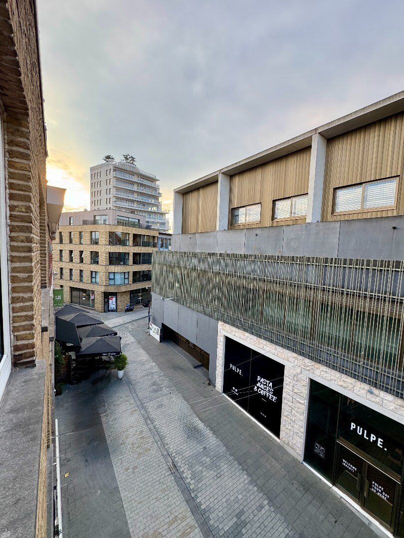 Ruime en lichte woonruimtes: de drie bovenliggende appartementen van elk ca. 85 m² bieden comfort en functionaliteit: een lichtrijke leefruimte aan de straatzijde, twee slaapkamers, een aparte WC, badkamer én een zonnig achterterras. Op de vierde verdieping bevindt zich een charmante studio met open leef- en slaapruimte, keuken, badkamer en twee terrassen met stadszicht.