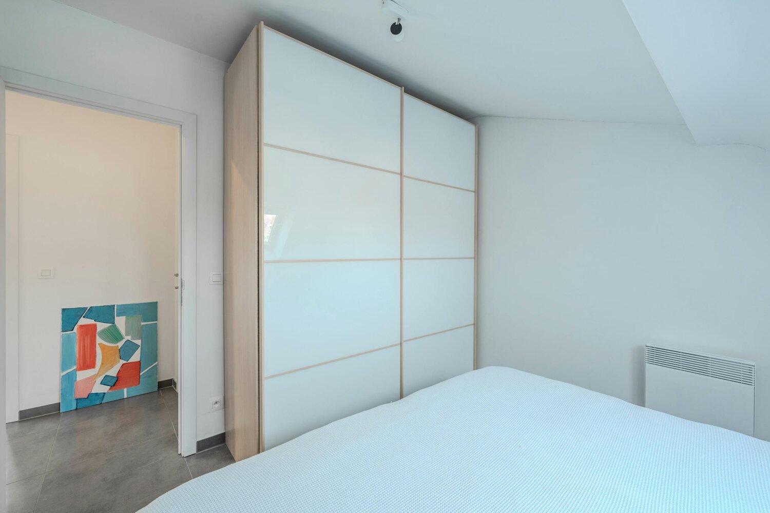 À l'étage supérieur, vous trouverez deux chambres lumineuses avec de nombreux rangements et une salle de bain moderne avec lavabo, douche à l'italienne et toilettes.