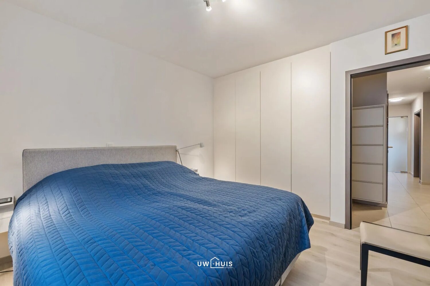 Het appartement beschikt over drie volwaardige slaapkamers, voorzien van rolluiken en ingemaakte kasten. De badkamer is modern ingericht en uitgerust met een inloopdouche en dubbele lavabo. Daarnaast is er nog een apart toilet.